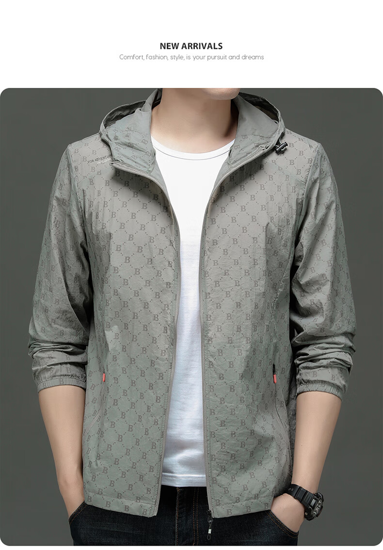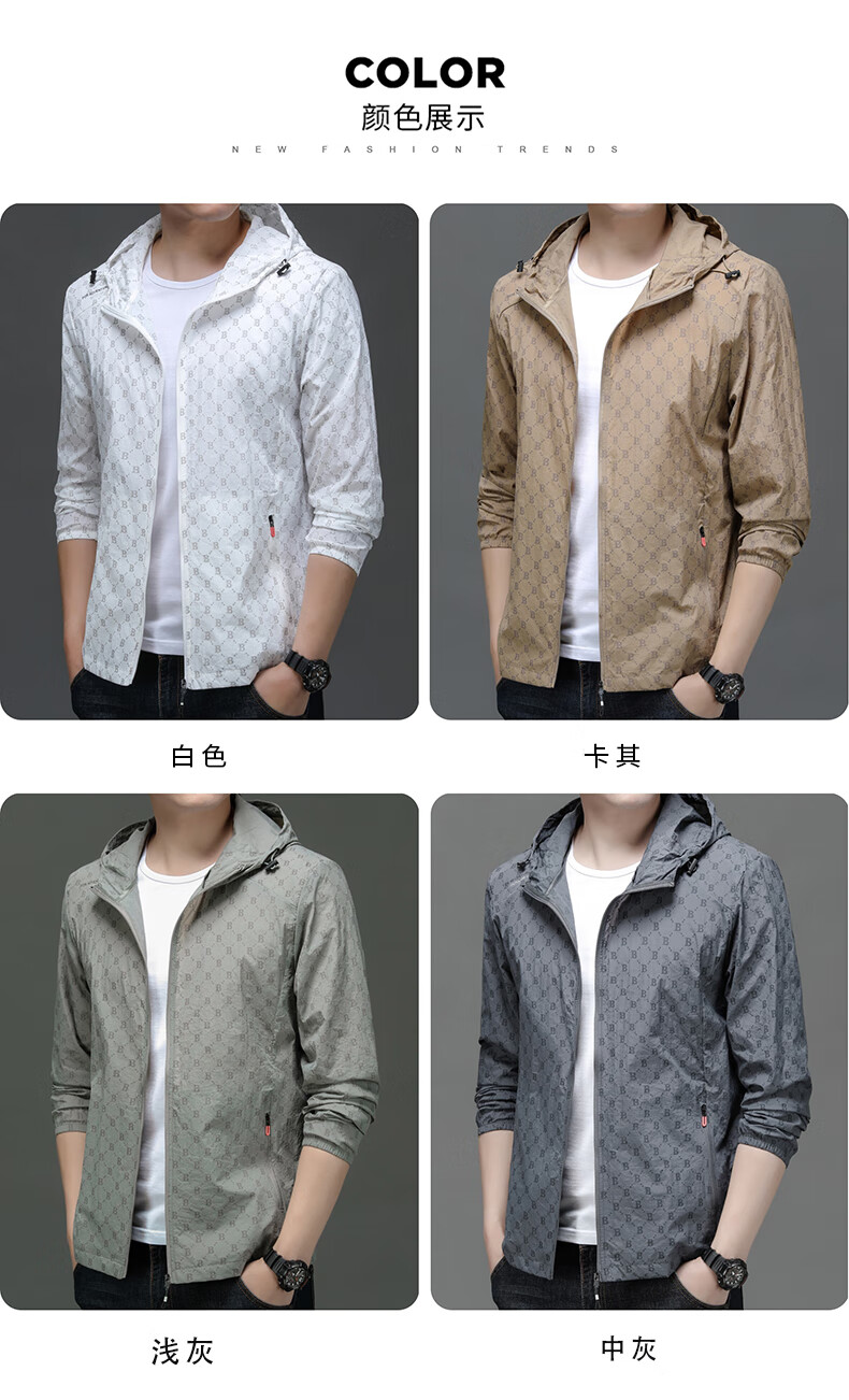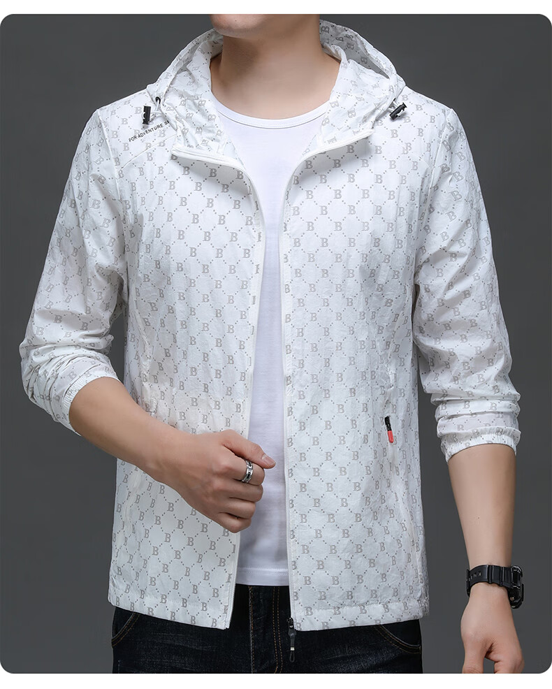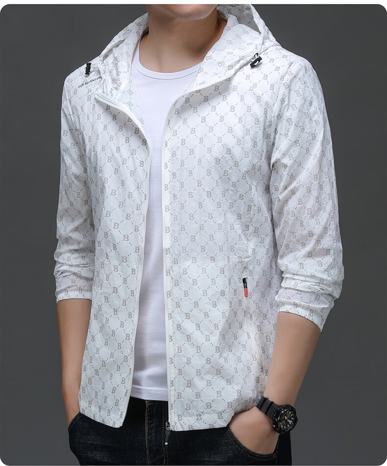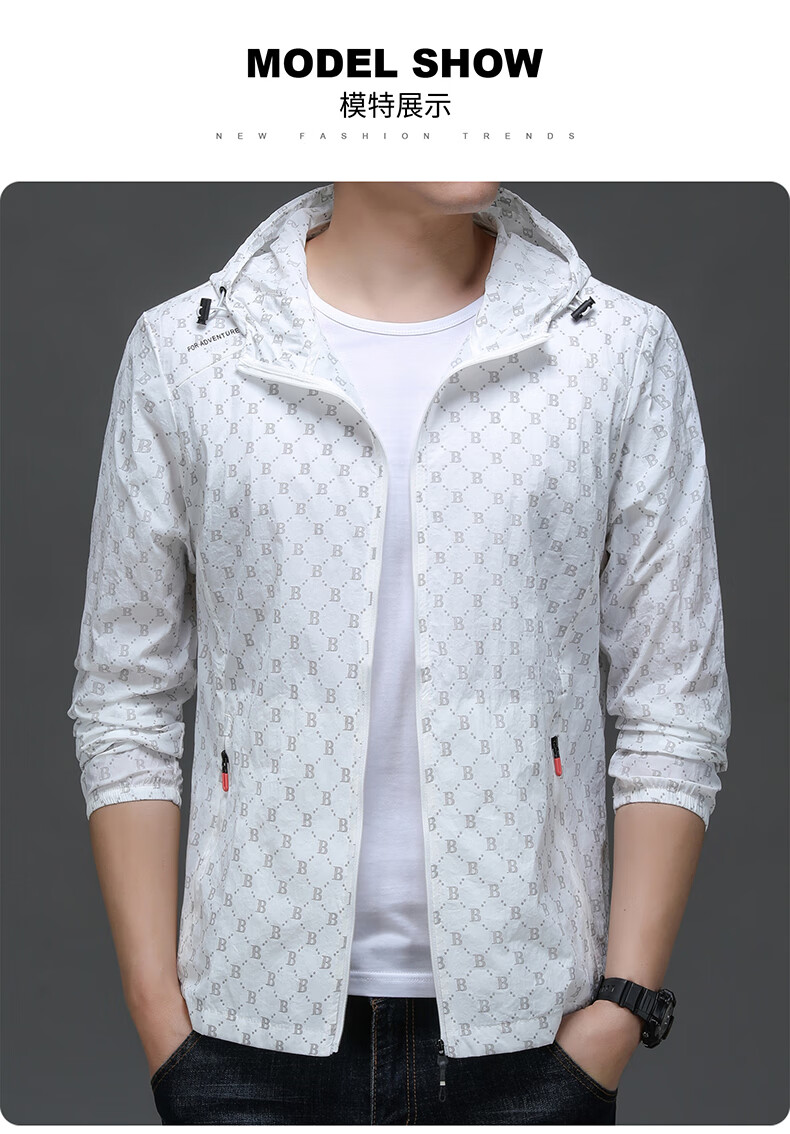 AX Armani high-end brand summer lightweight ice silk sun protection clothing for men outdoor quick-drying fishing skin clothing hooded clip white M
