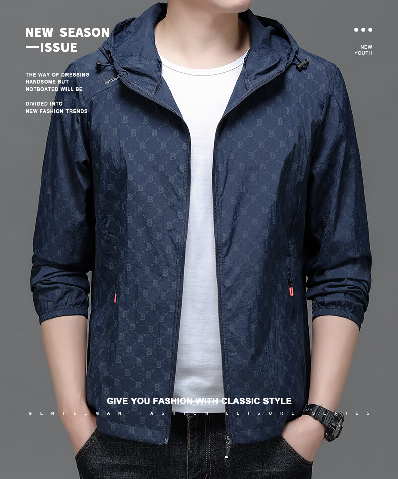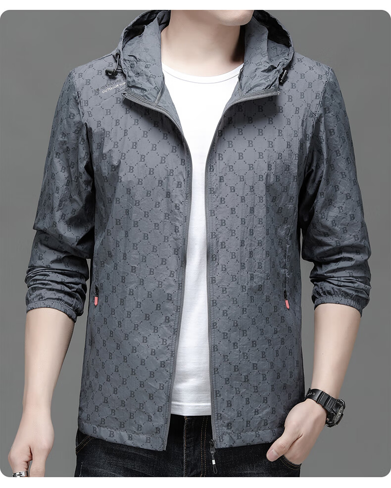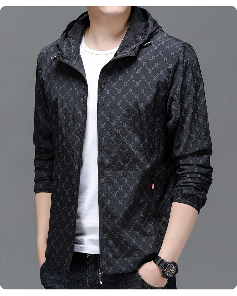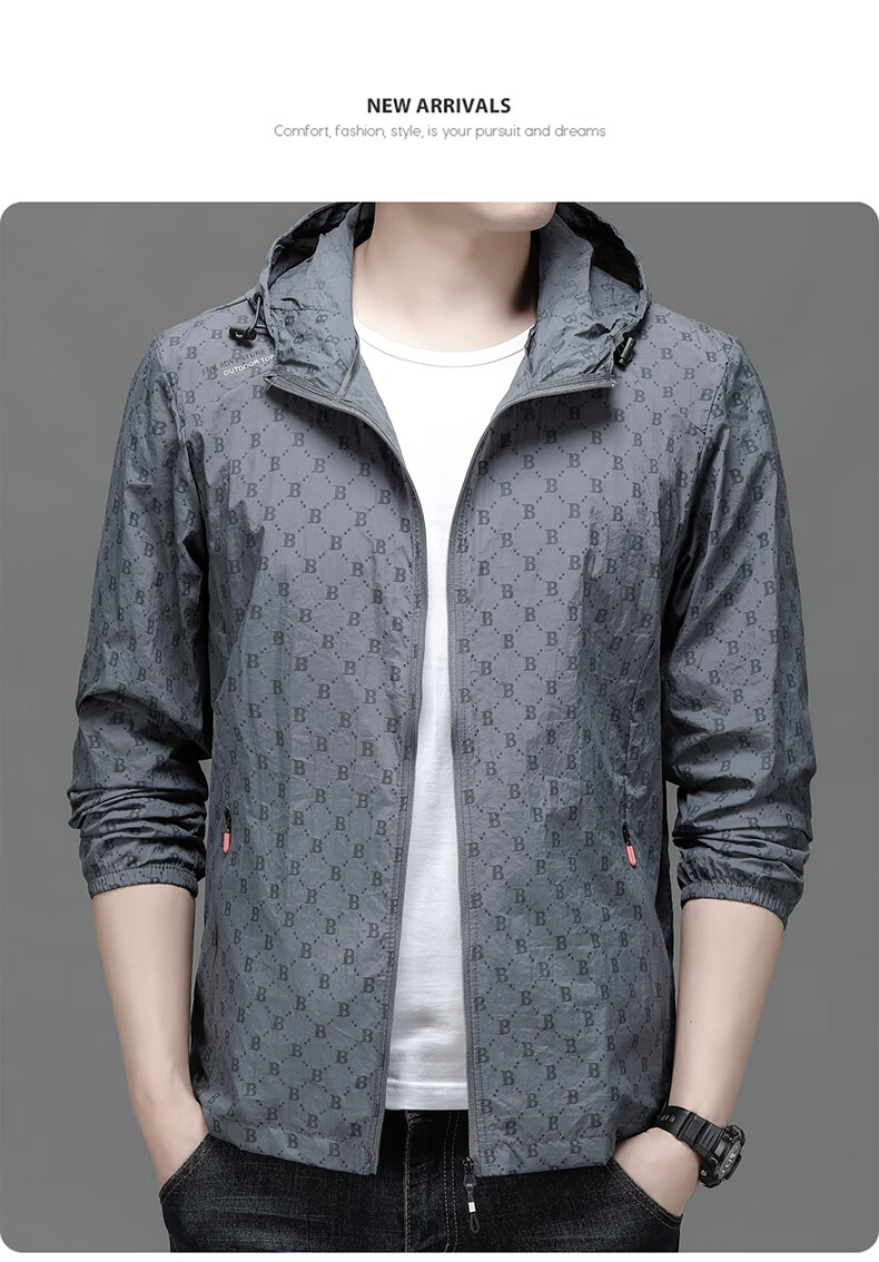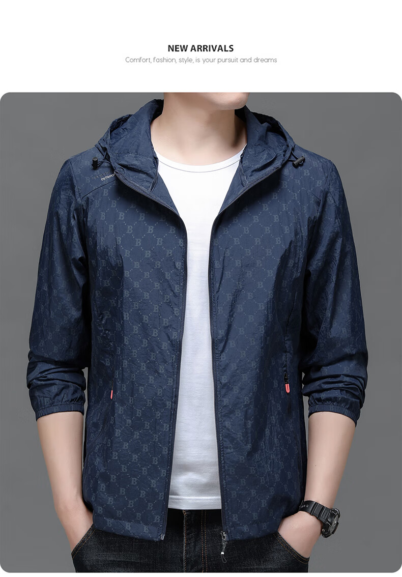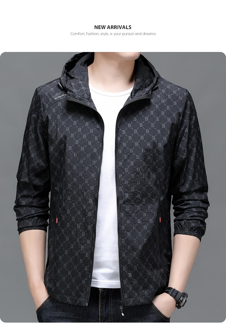 AX Armani high-end brand summer lightweight ice silk sun protection clothing for men outdoor quick-drying fishing skin clothing hooded clip white M
