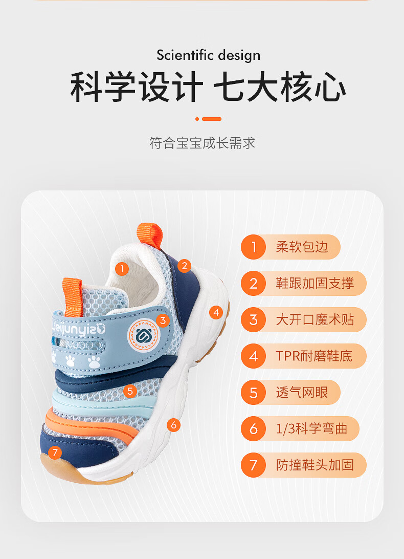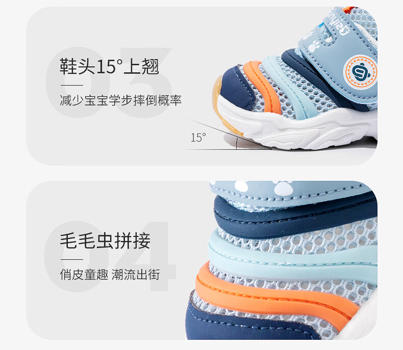 LI NING Li Ning toddler shoes, boys' shoes, spring and summer baby shoes, soft-soled children's shoes, female baby sandals, functional mesh shoes, sky blue (summer style) 12.5 inner length cm_size 17_suitable for feet around 11.5cm long