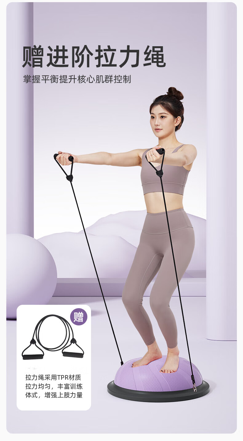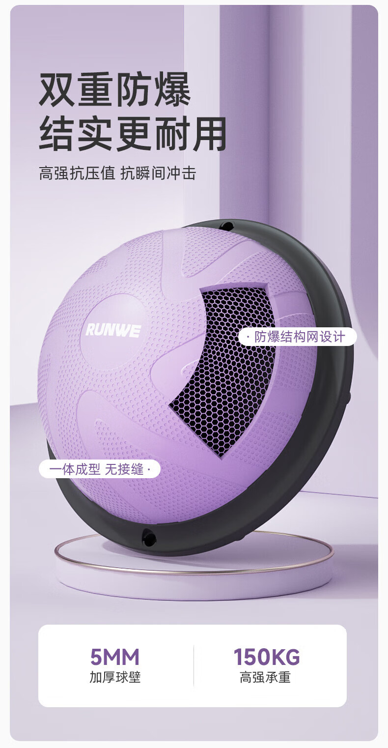 Langwei wave speed ball semicircular balance ball yoga ball thickened explosion-proof Pilates yoga trainer speed ball fitness equipment pink-46cm