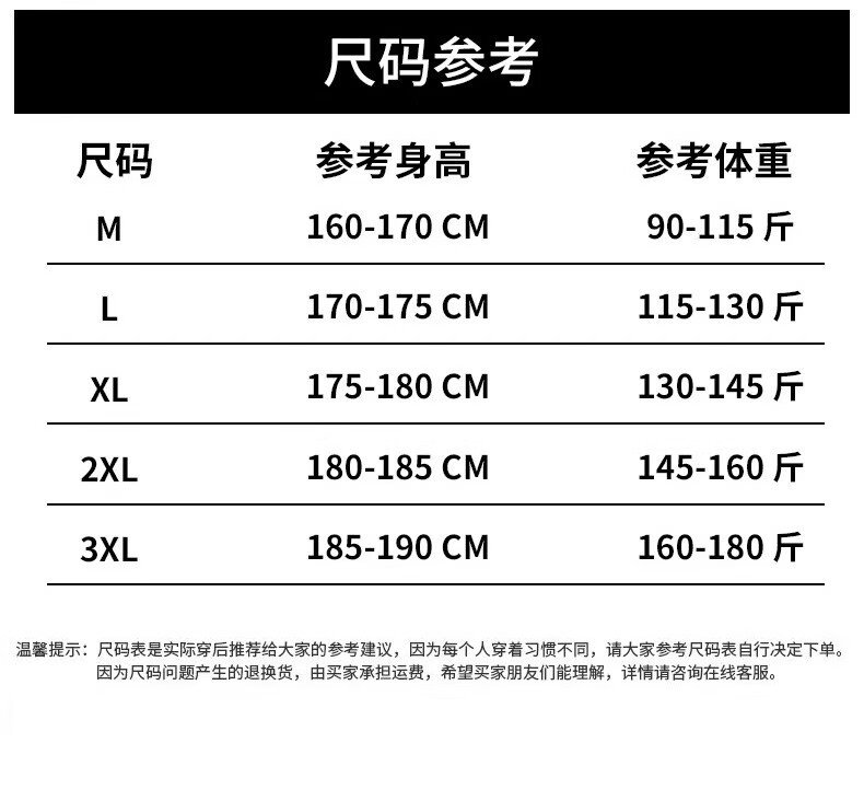 China (cm) 165 / 88-90 170 / 96-98 175 / 108-110 180 / 118-122 185 / 126-130