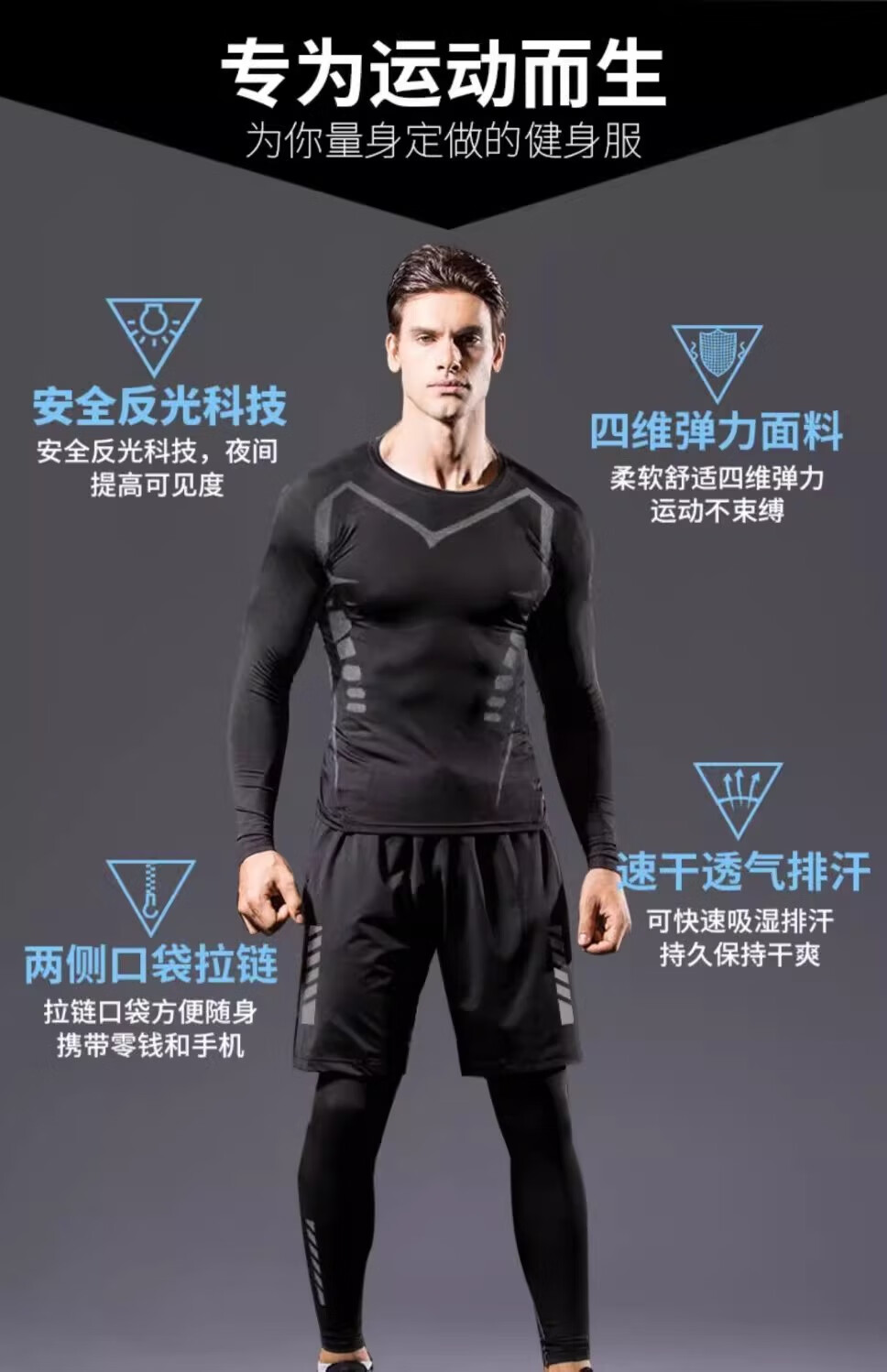 Bimax Autumn and Winter Morning Running Cycling Suit Sports Suit Men's Running Quick-Drying Breathable Loose Fitness Suit Outdoor Training Suit Elite Cycling Suit Five-piece Set M