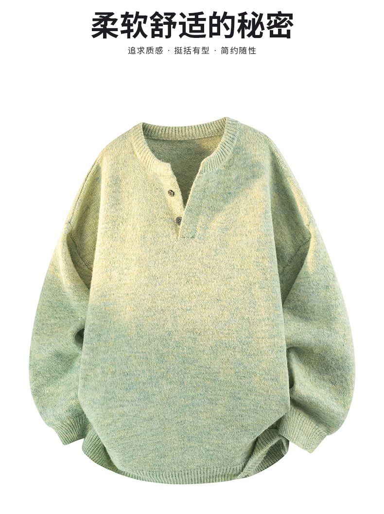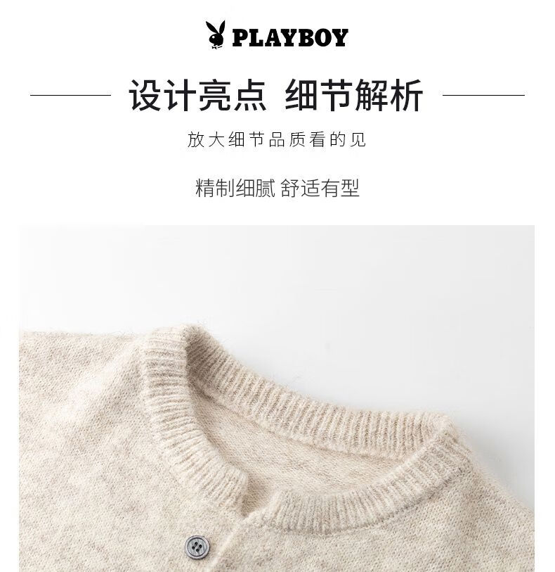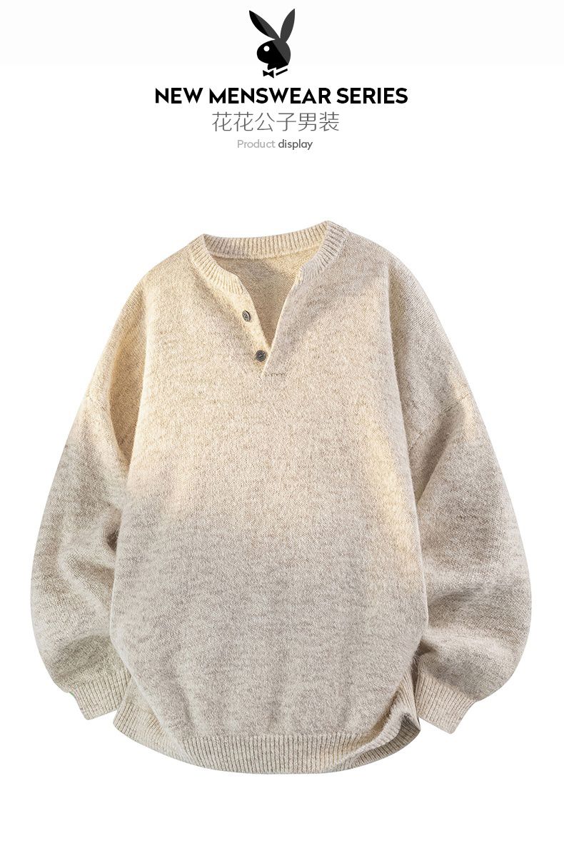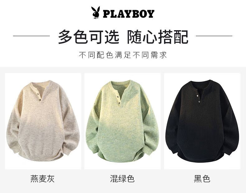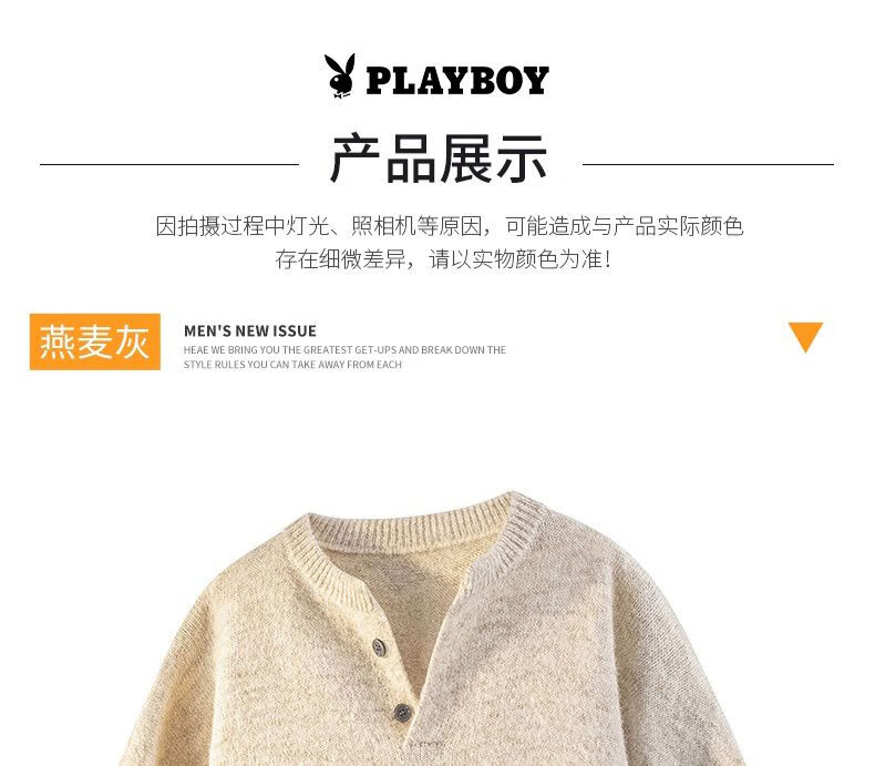 Playboy Henry Collar Sweater Men's Cardigan Sweater Autumn and Winter New Style Thickened Bottoming Sweater Men 0051 Oatmeal Gray S S