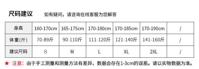 China (cm) 165 / 88-90 170 / 96-98 175 / 108-110 180 / 118-122 185 / 126-130