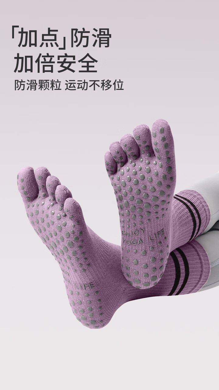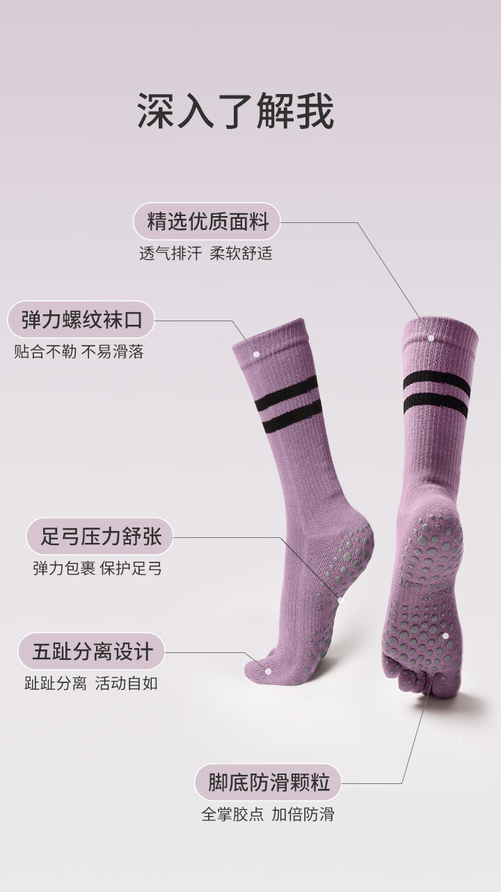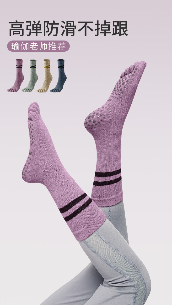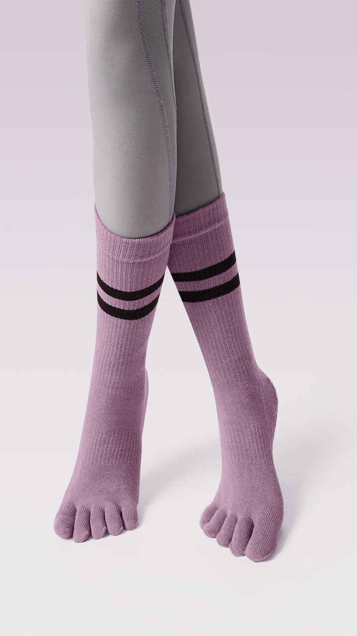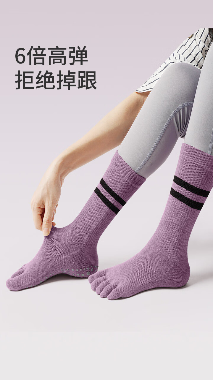 Zailu autumn and winter yoga socks, non-slip, women's indoor special fitness five-finger Pilates socks, split toe mid-calf socks, 2 pairs of black stripes