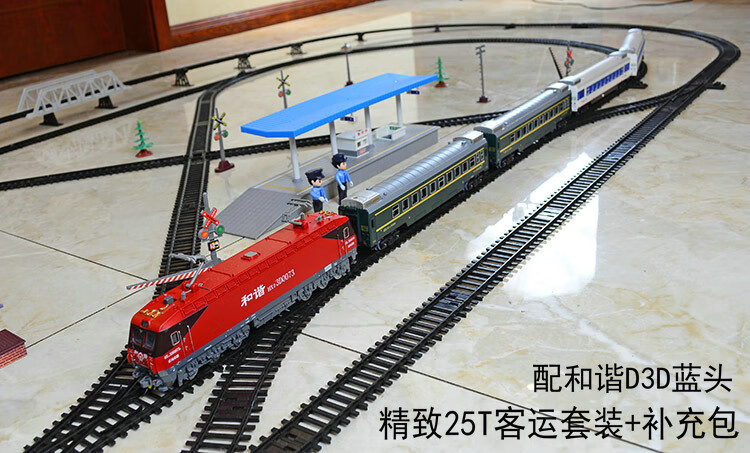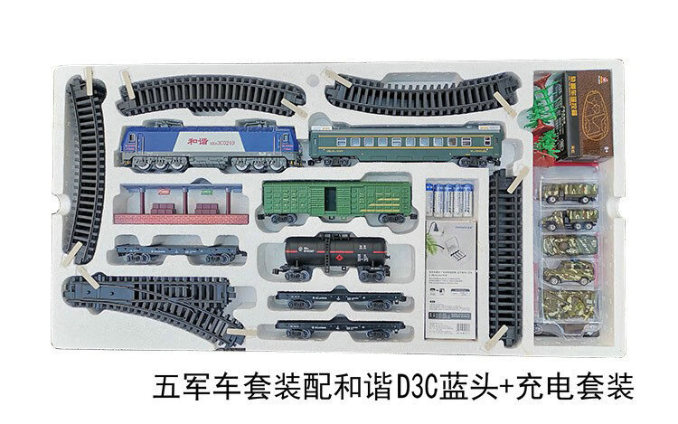 Oral Alloy Electric Remote Control Electric Locomotive Harmony HXD3CD Simulation Model Toy Track Train Set Transport Vehicle Set with D3C Blue Head Free Ordinary Battery