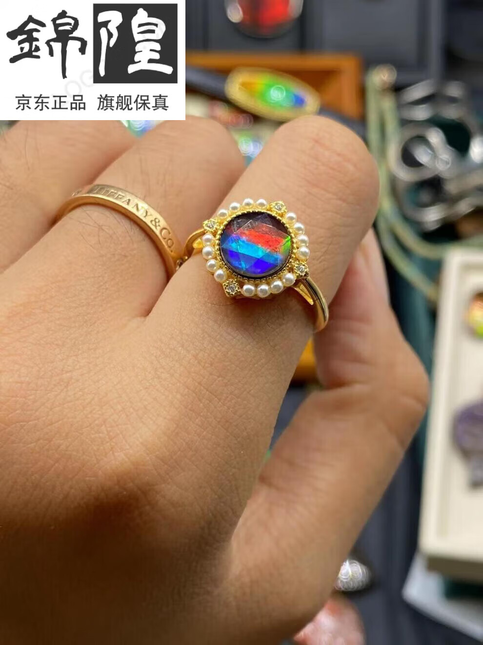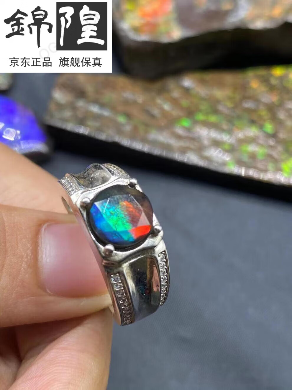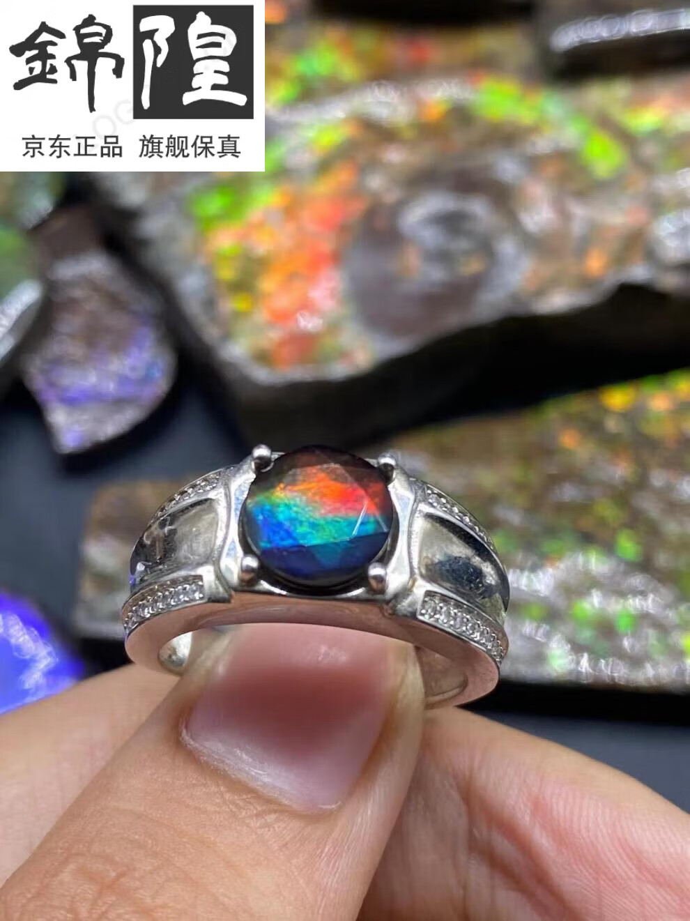 Xuanxian Canadian ammolite ring retro personalized open pearl sterling silver bezel set new women's ring