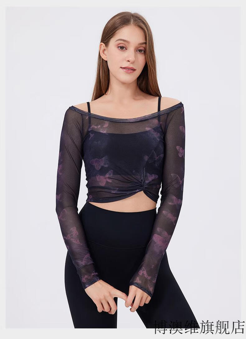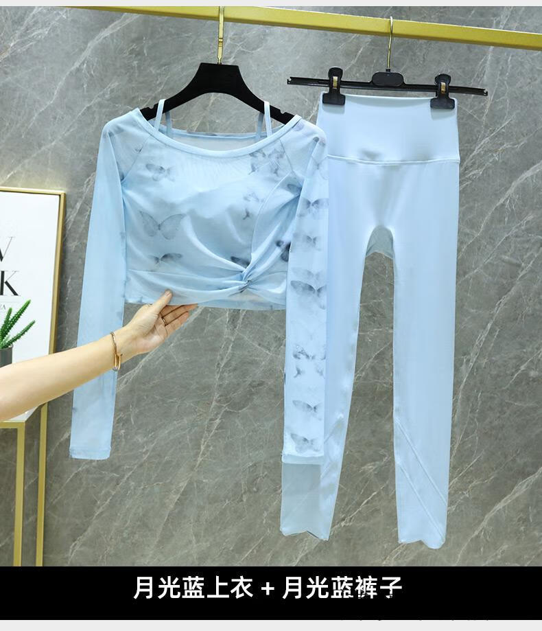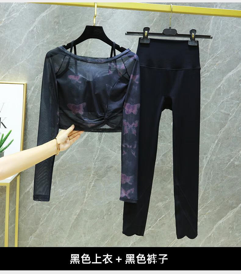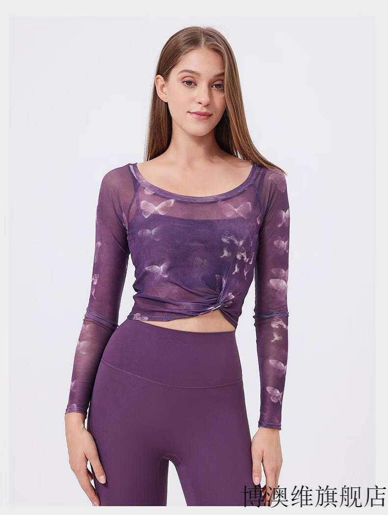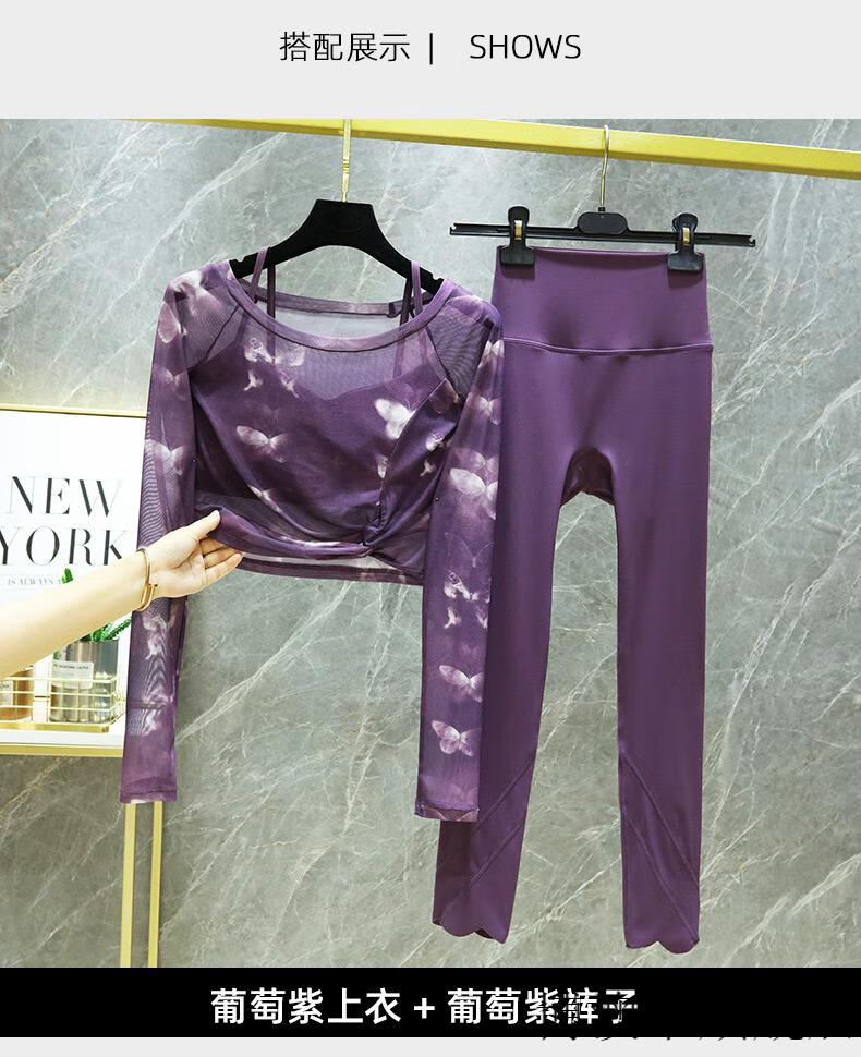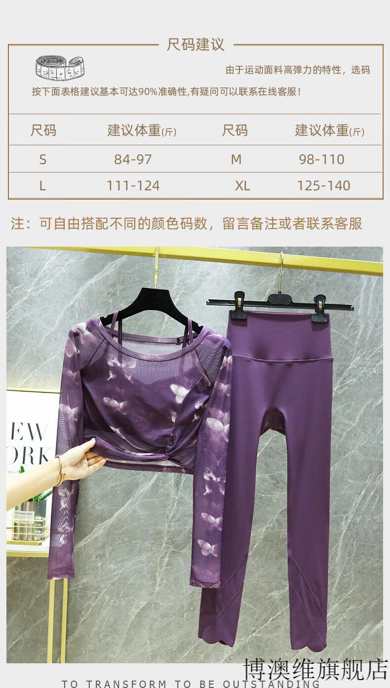 Pilates Clothes Set Autumn Mesh Yoga Clothes Women's 2024 New Style Stunningly Beautiful With Breast Pads Long Sleeves Fitness Grape Purple Top + Grape Purple Pants Two-piece Set S S Recommendation 84-97 Jin Jin is equal to 0.5 kg
