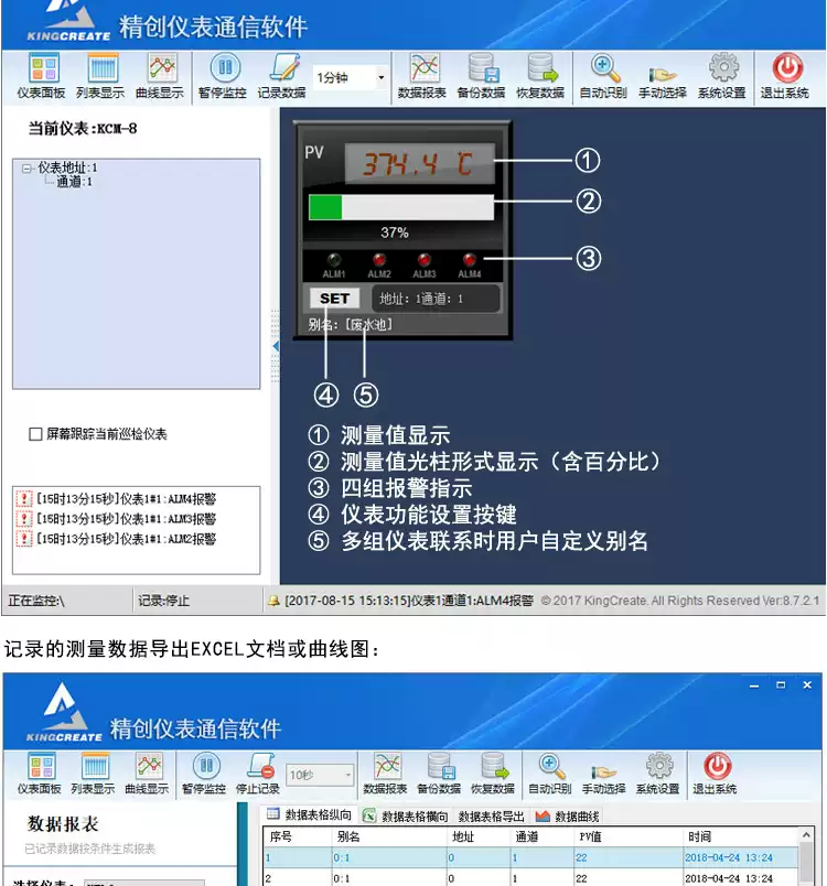 Liquid level water level with light column display instrument fire pool water tank controller with alarm and recorder RS485 size 96*48