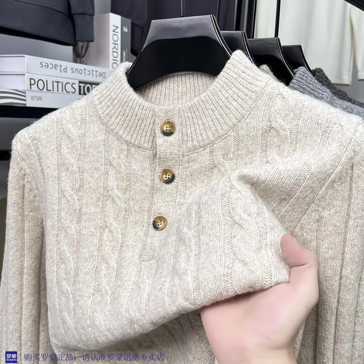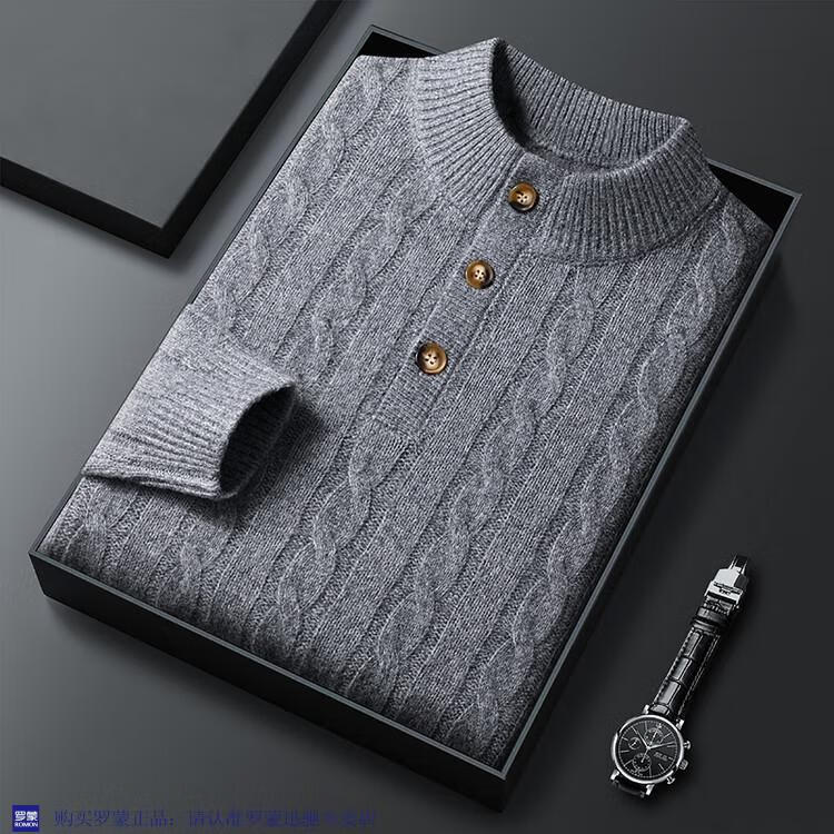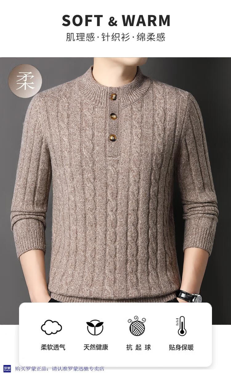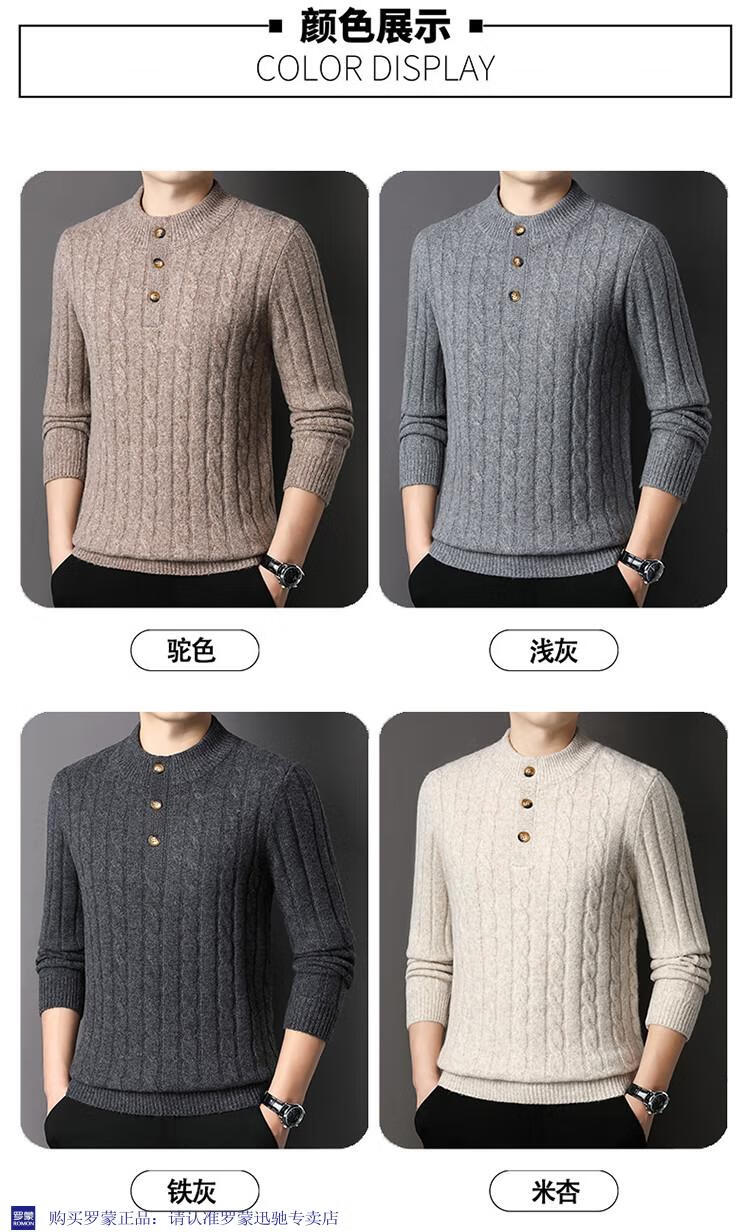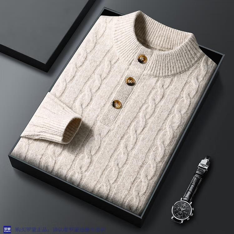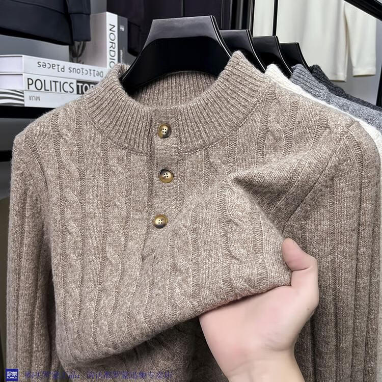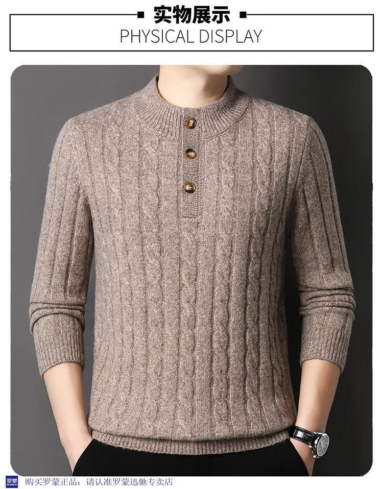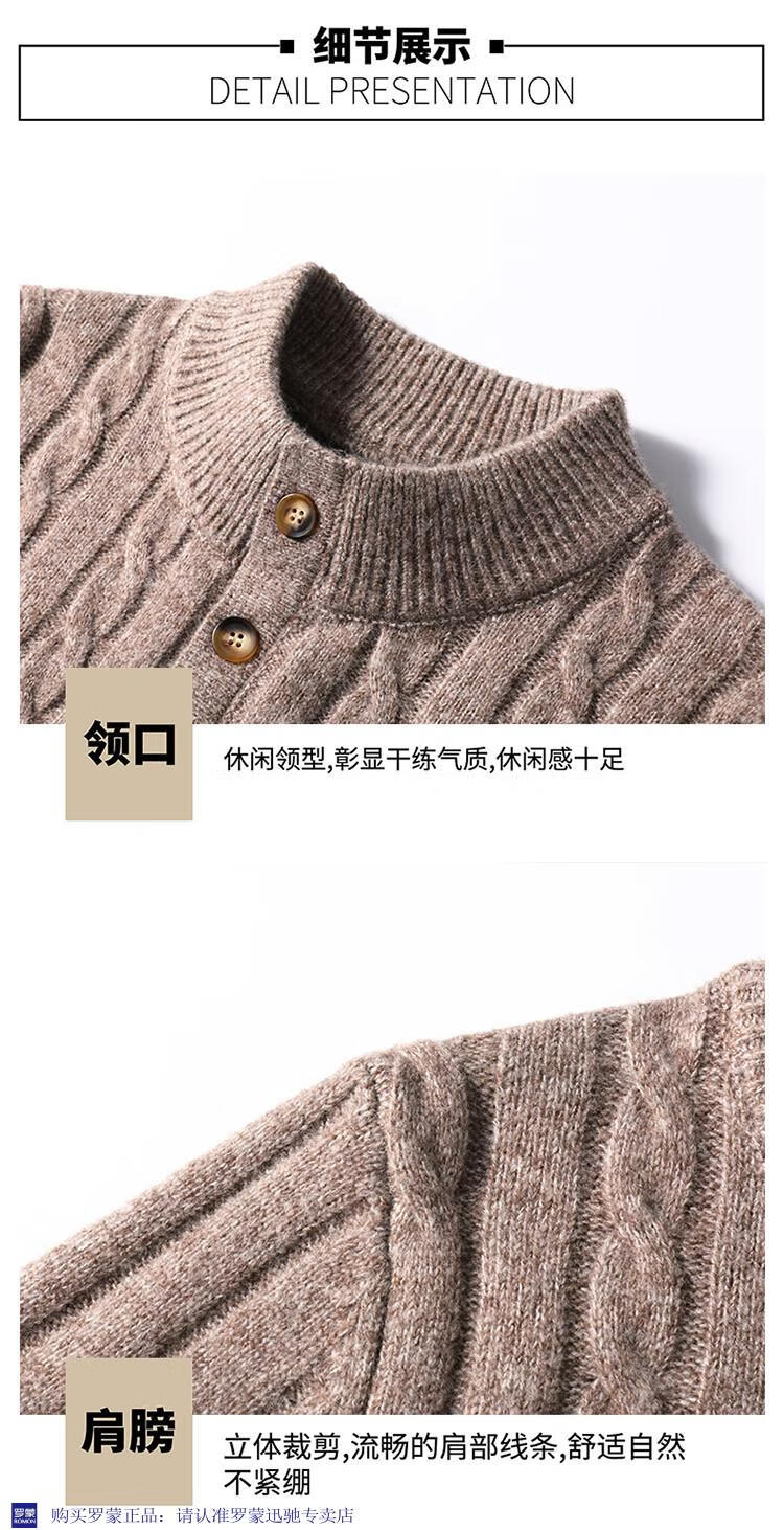 Luo Meng's new autumn and winter men's 100% pure wool sweater Henry collar casual jacquard sweater half turtleneck warm sweater Mi Xing M