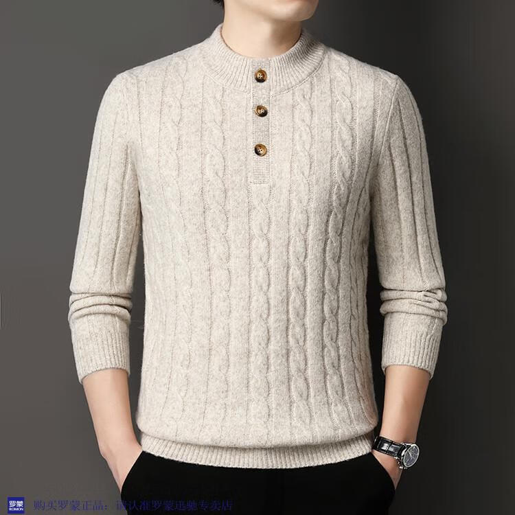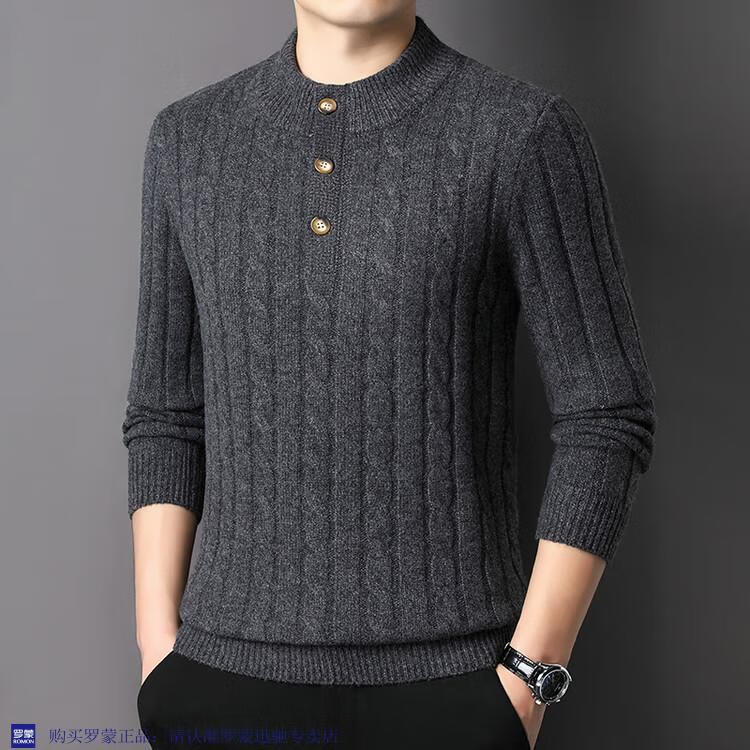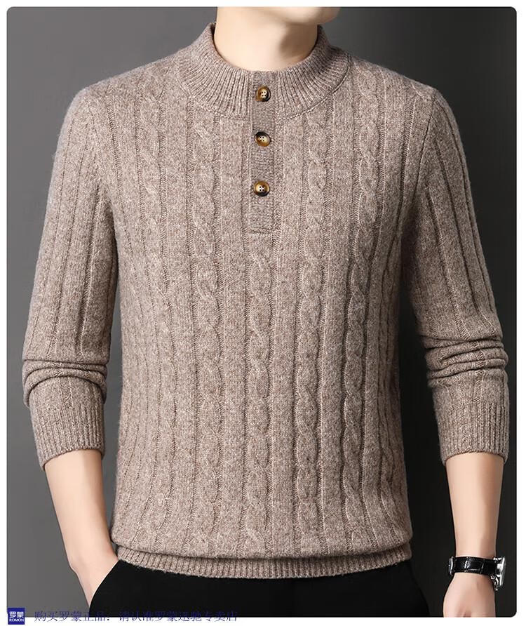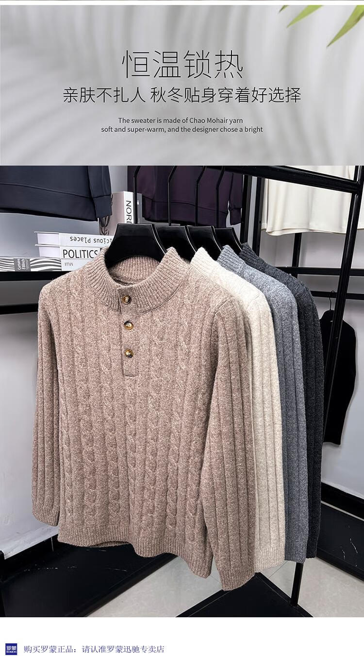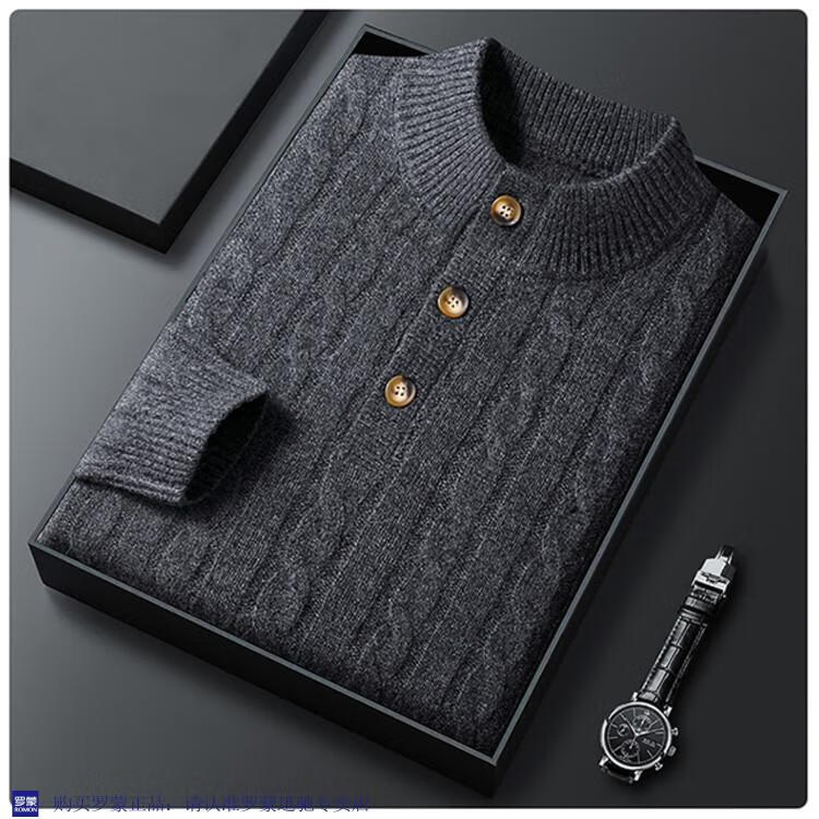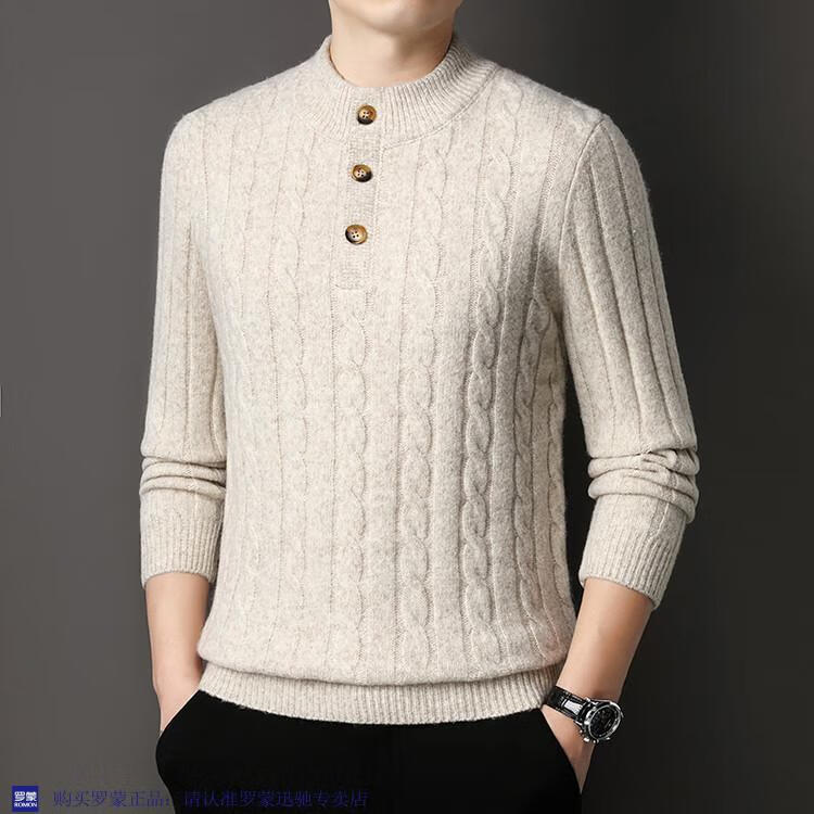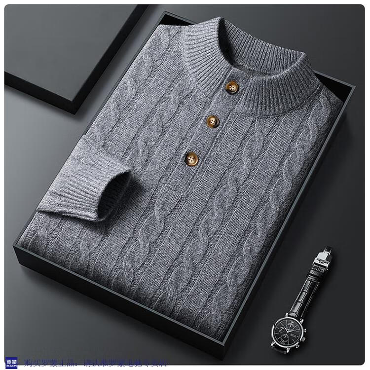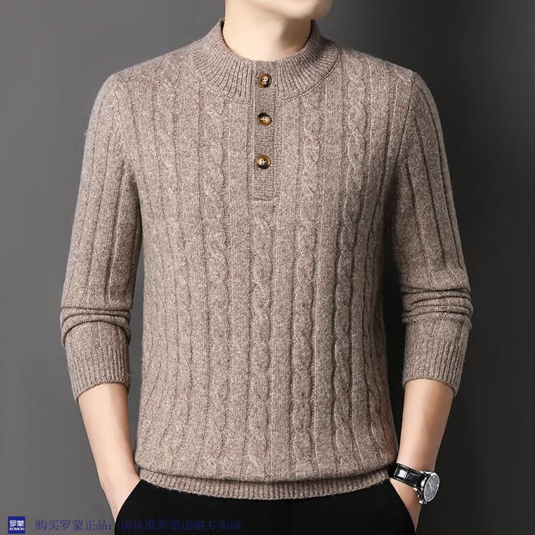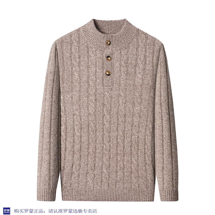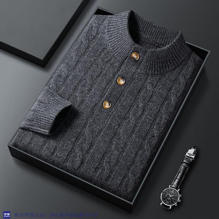 Luo Meng's new autumn and winter men's 100% pure wool sweater Henry collar casual jacquard sweater half turtleneck warm sweater Mi Xing M