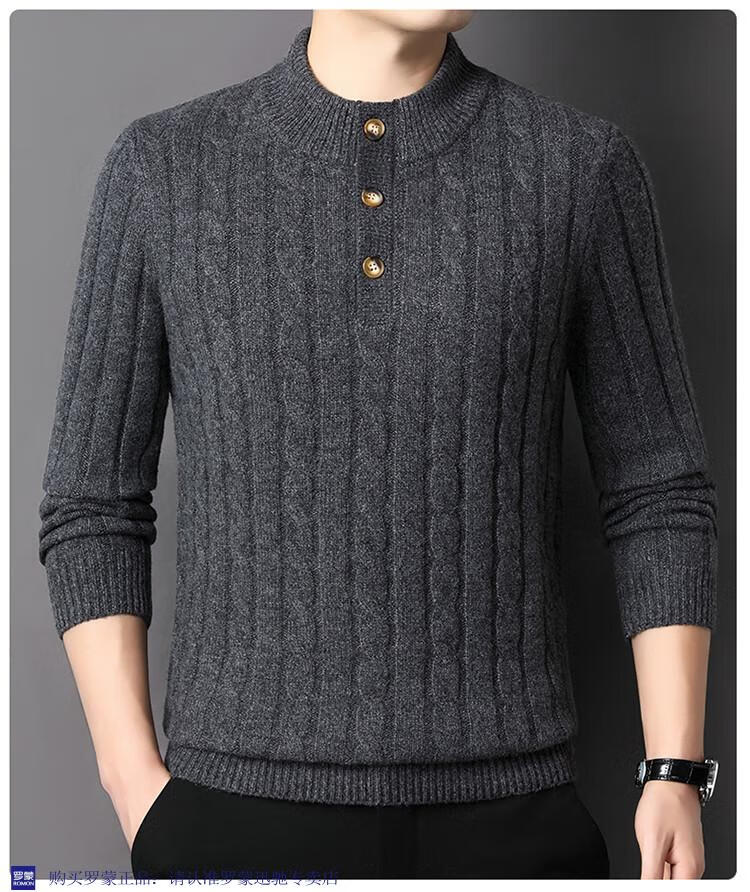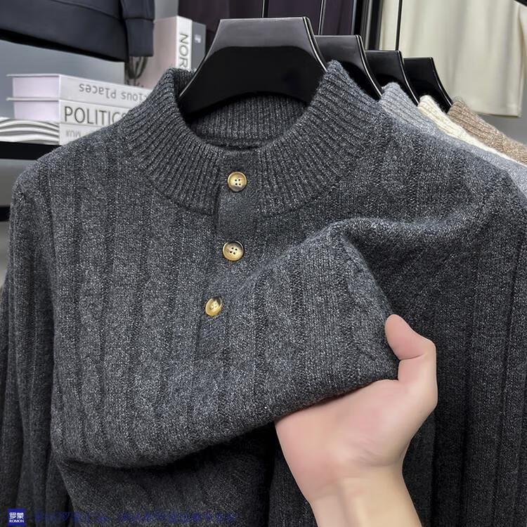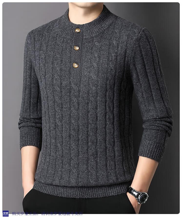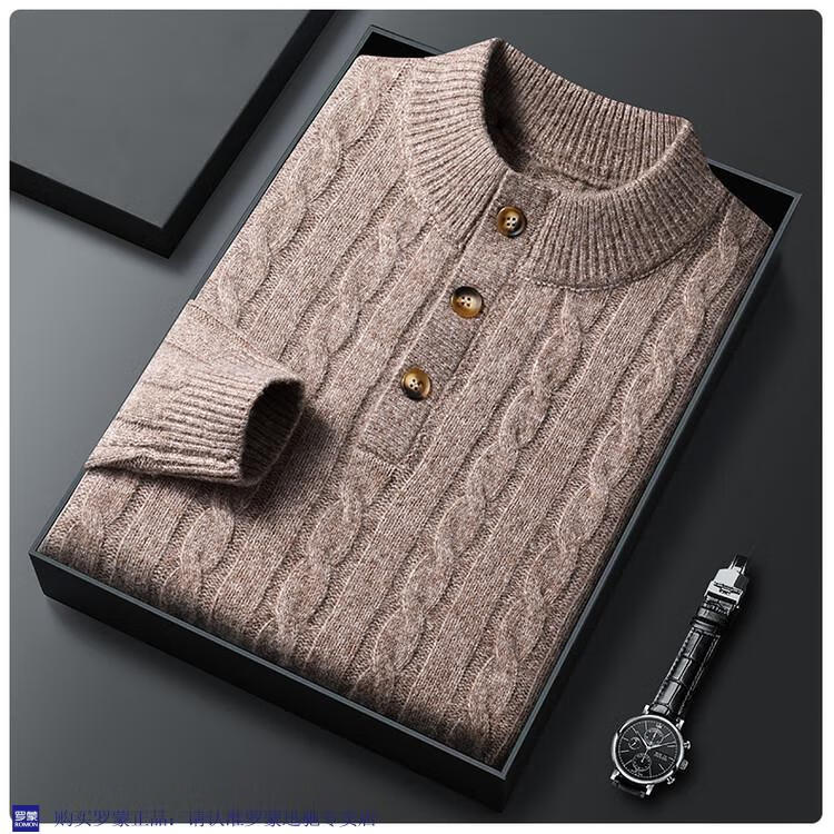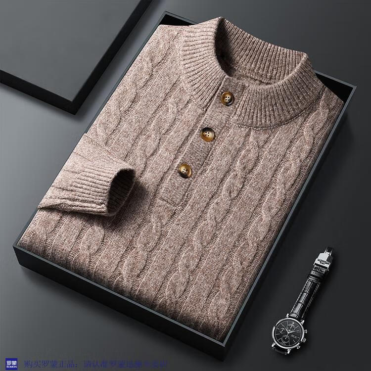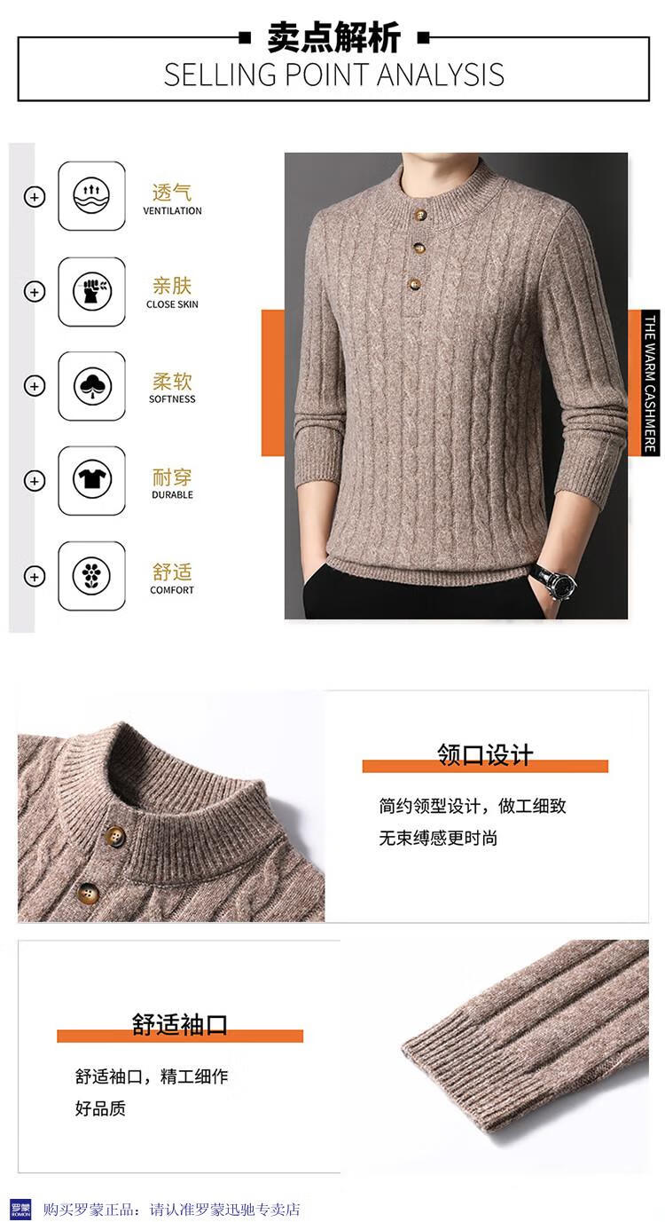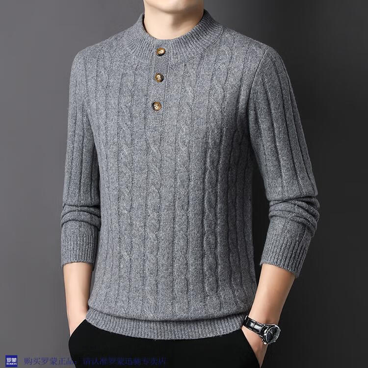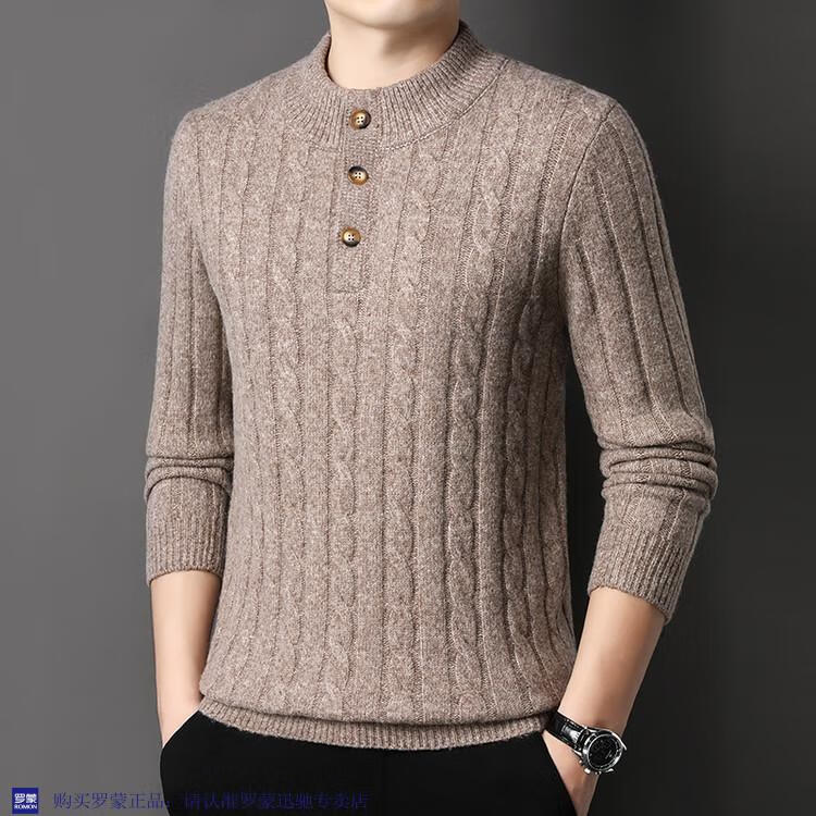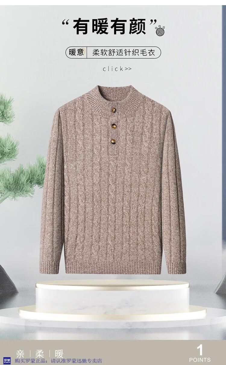 Luo Meng's new autumn and winter men's 100% pure wool sweater Henry collar casual jacquard sweater half turtleneck warm sweater Mi Xing M