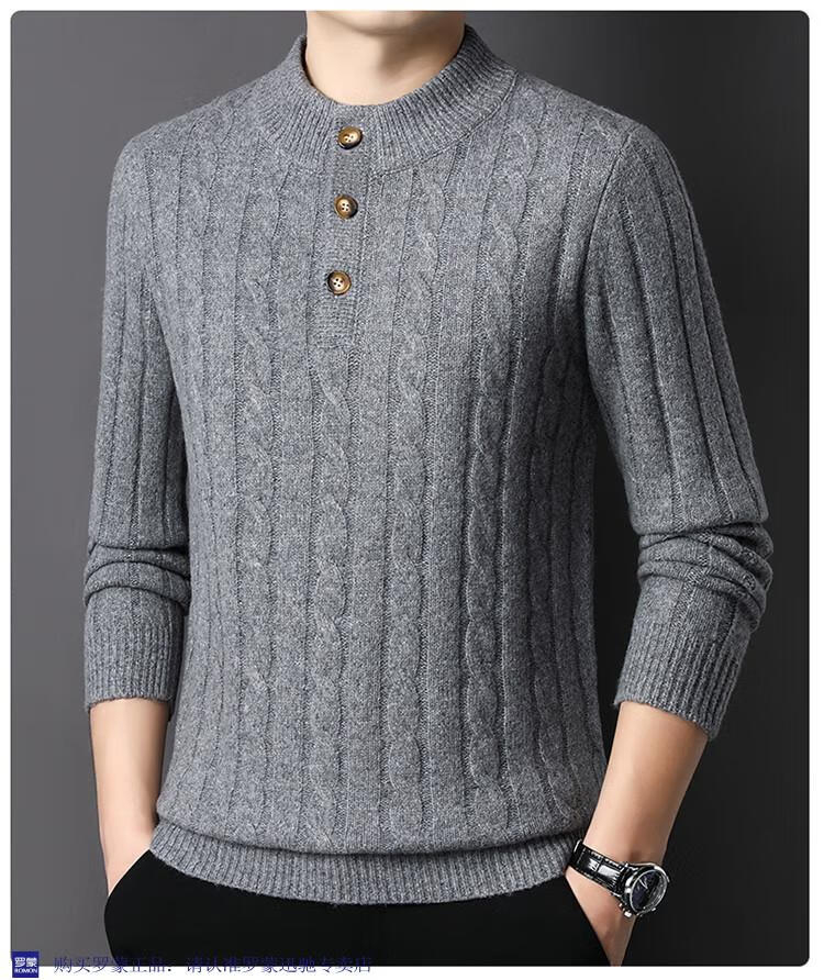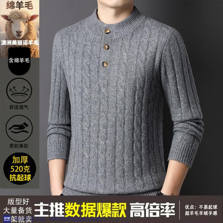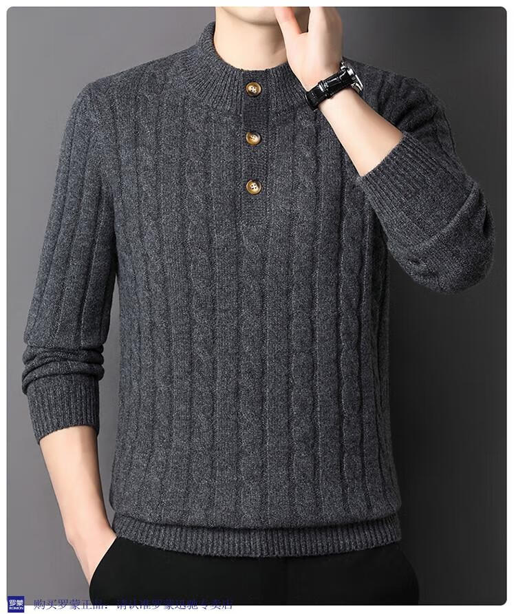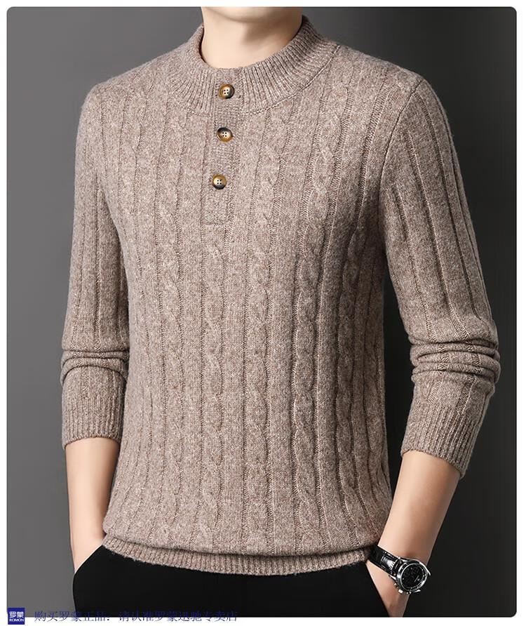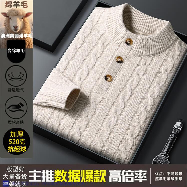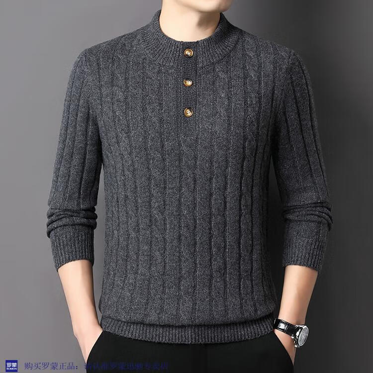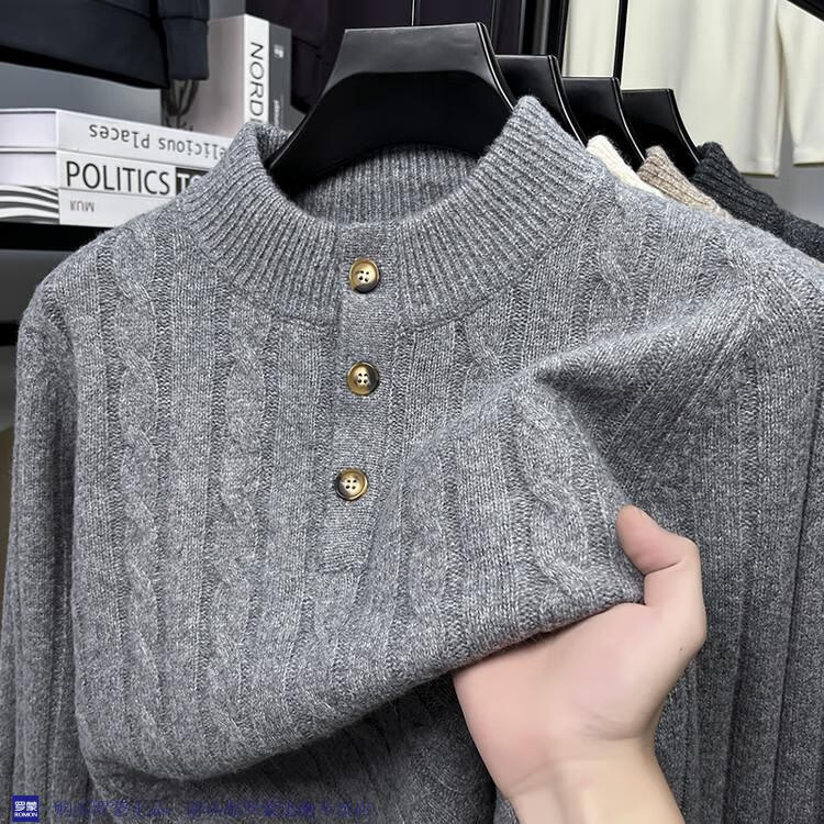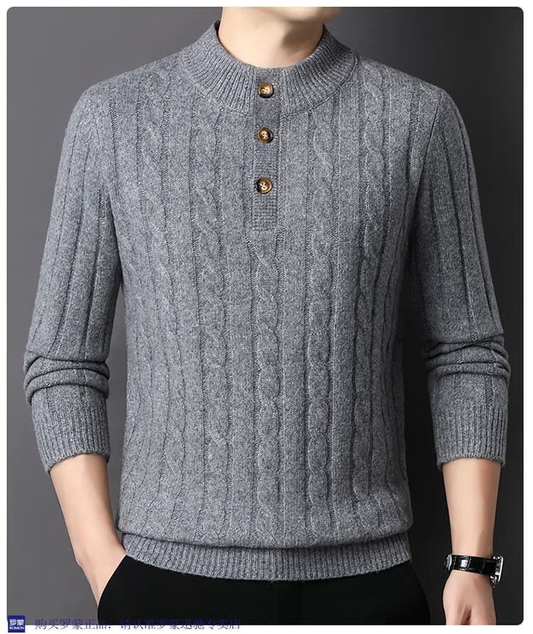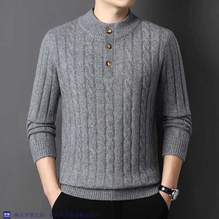Luo Meng's new autumn and winter men's 100% pure wool sweater Henry collar casual jacquard sweater half turtleneck warm sweater Mi Xing M