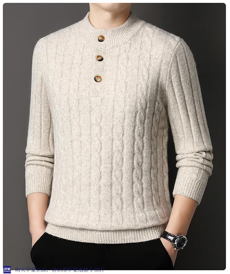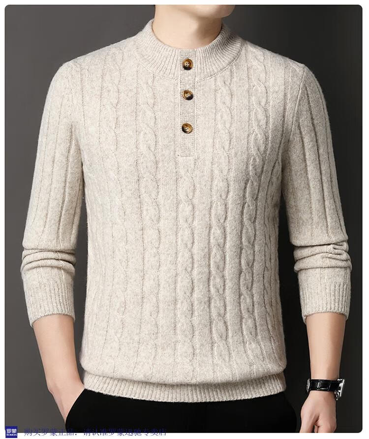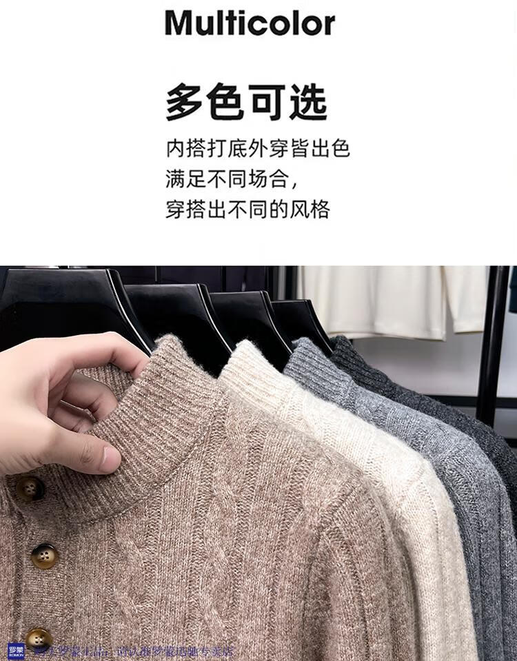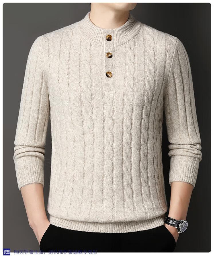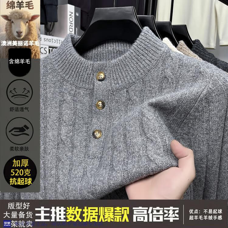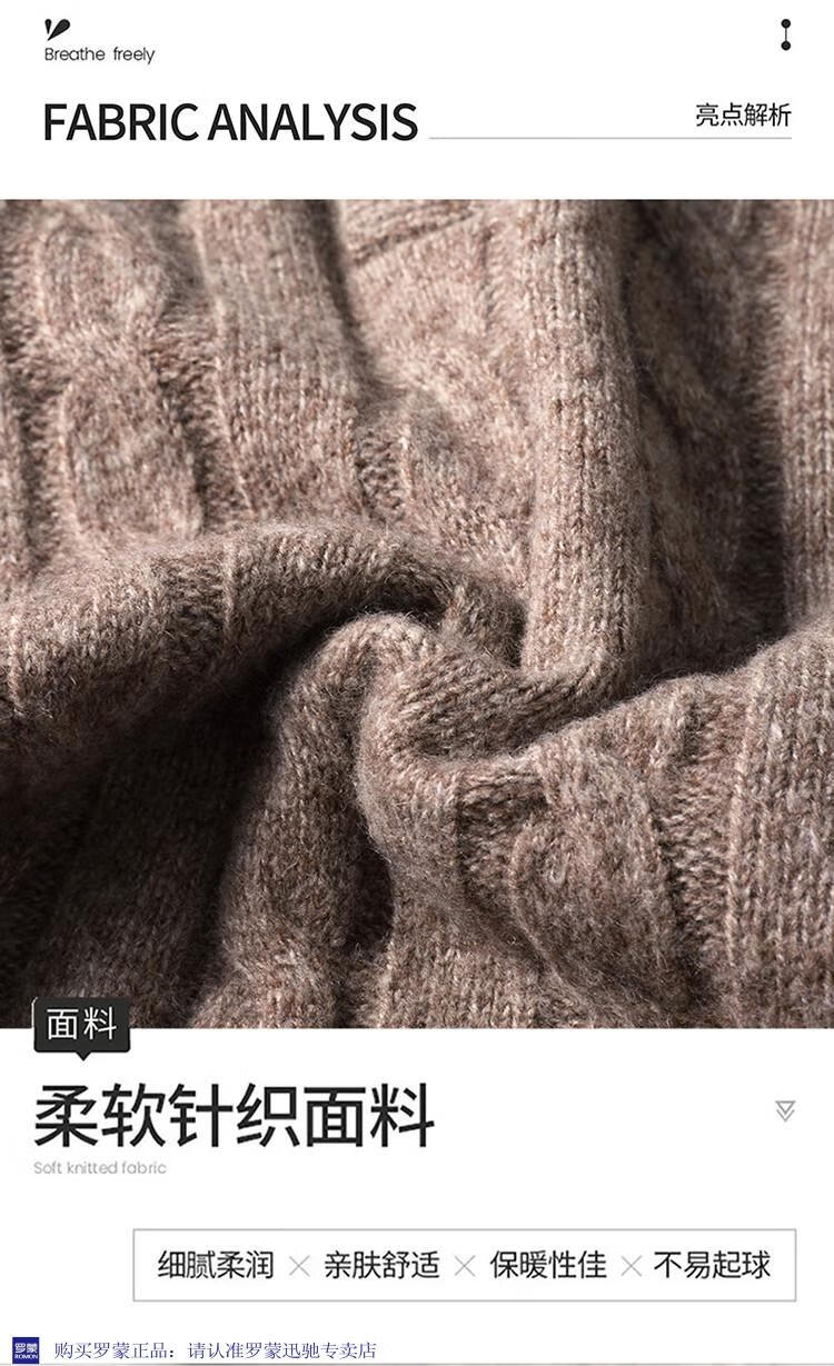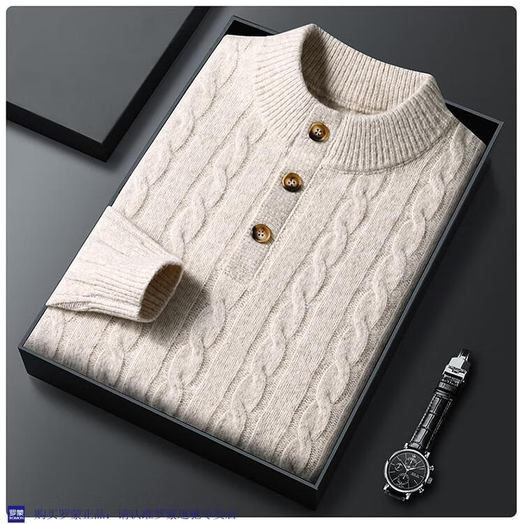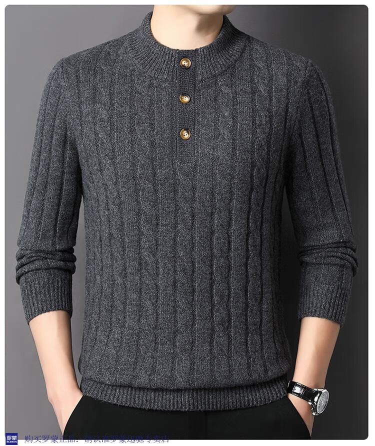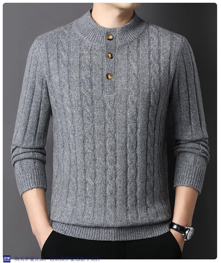 Luo Meng's new autumn and winter men's 100% pure wool sweater Henry collar casual jacquard sweater half turtleneck warm sweater Mi Xing M
