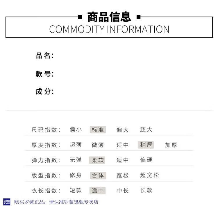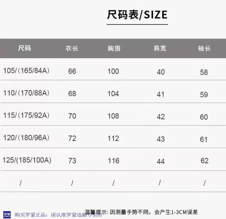 China (cm) 165 / 88-90 170 / 96-98 175 / 108-110 180 / 118-122 185 / 126-130