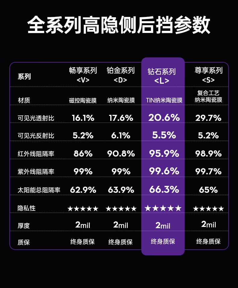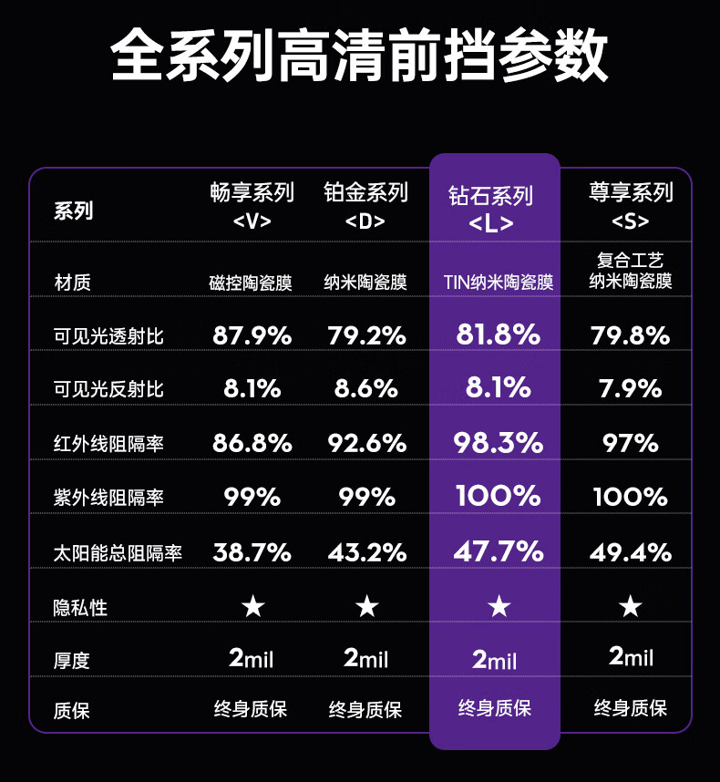 Luodun Diamond L car film 100% anti-UV full car film car glass film solar film thermal insulation film window film explosion-proof film platinum D series full car film package construction platinum D pro series full car film free upgrade to enjoy S series