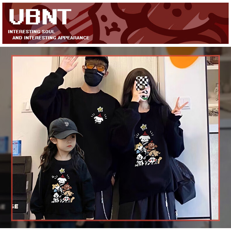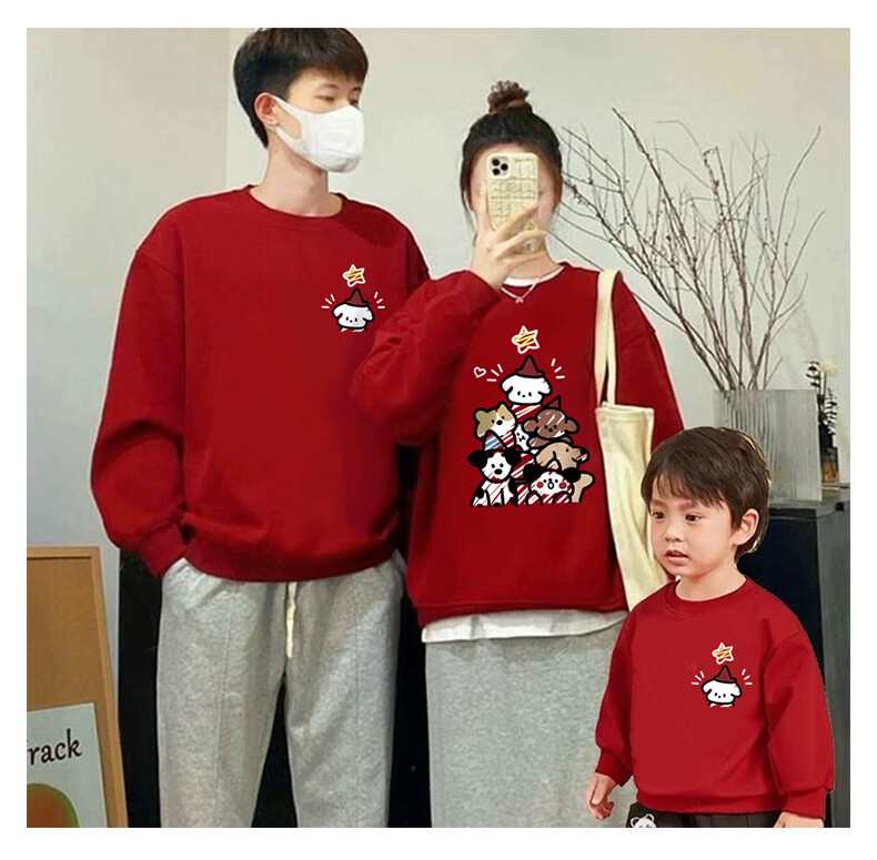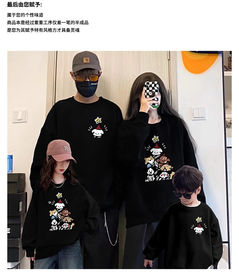 G.duck parent-child wear sweatshirt spring autumn winter 2025 new year model family of three and four mother and daughter wear family portrait children's clothing paper bag cat and dog white-thin section 90 cm for girls