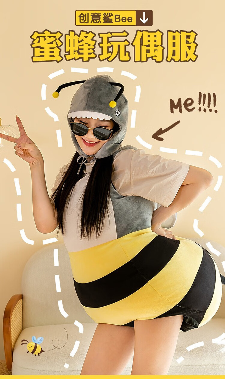 Miaopule Little Bee Doll Costume Extra Large Children's Wearable Funny Doll Plush Toy Turtle Shell Sleeping Bag Pillow Shark Hat Bee Suit, Extra Large Adult Model Height Above 170cm