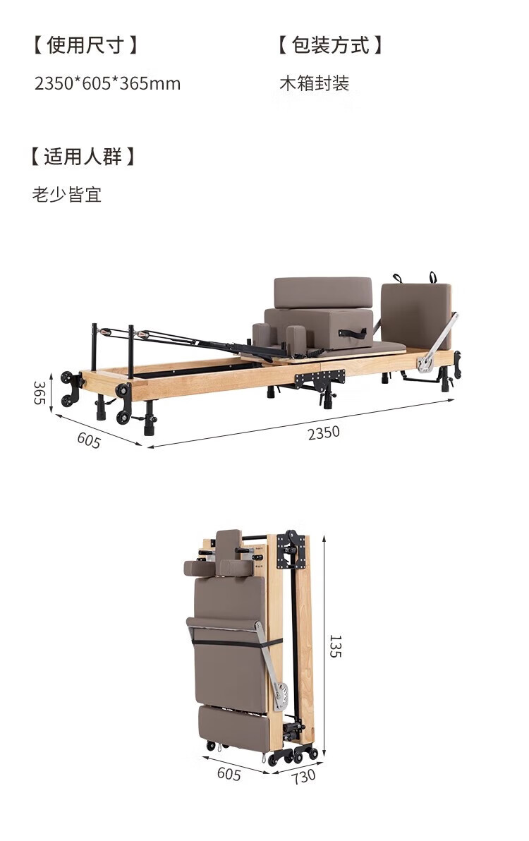 Liyi Official Direct Sales Pilates Core Bed Household Foldable Bed Large Equipment Sports Training Imported Red Oak Foldable No Installation-Can