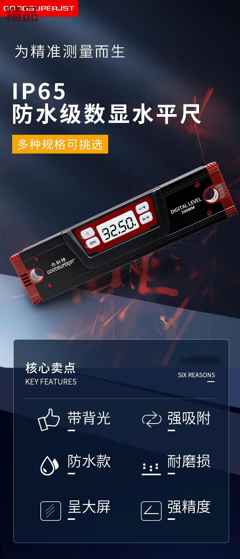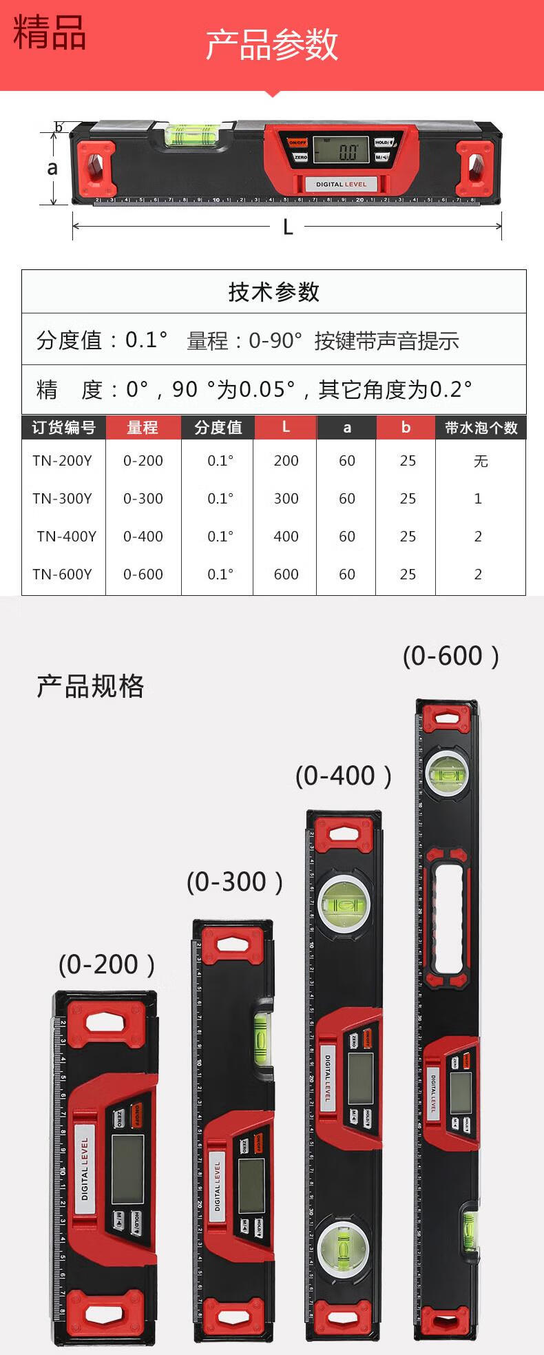 GOODSUPERJST core digital display level high-precision electronic level new anti-fall IP65 waterproof digital display angle new red TN-1200L (0-1200MM) new model on the shelves