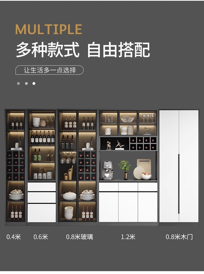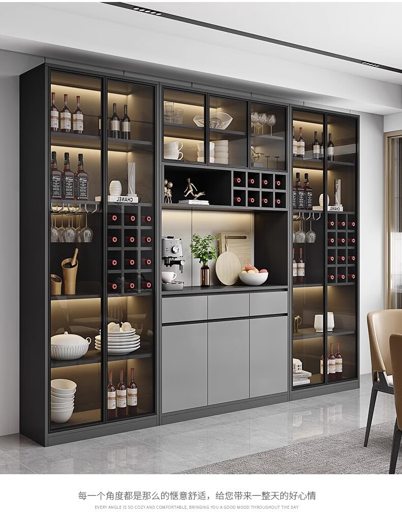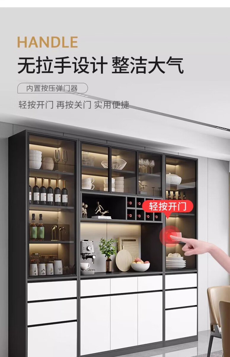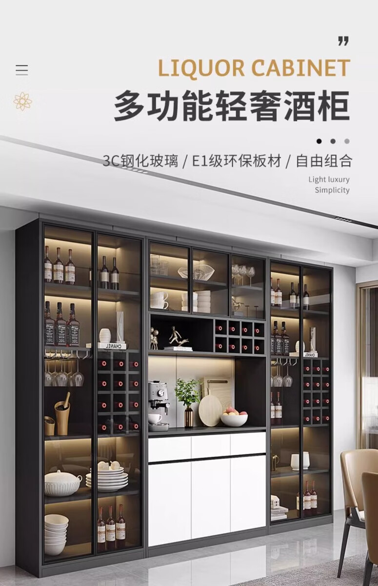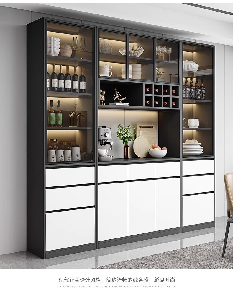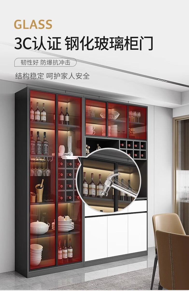 The middle shopkeeper's living room wine cabinet display cabinet against the wall 2025 solid wood light luxury tea and wine cabinet storage cabinet with glass door 80A+120A+80A/white door free delivery