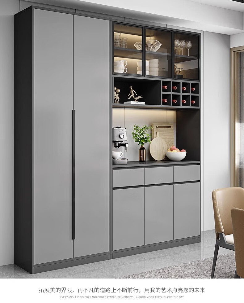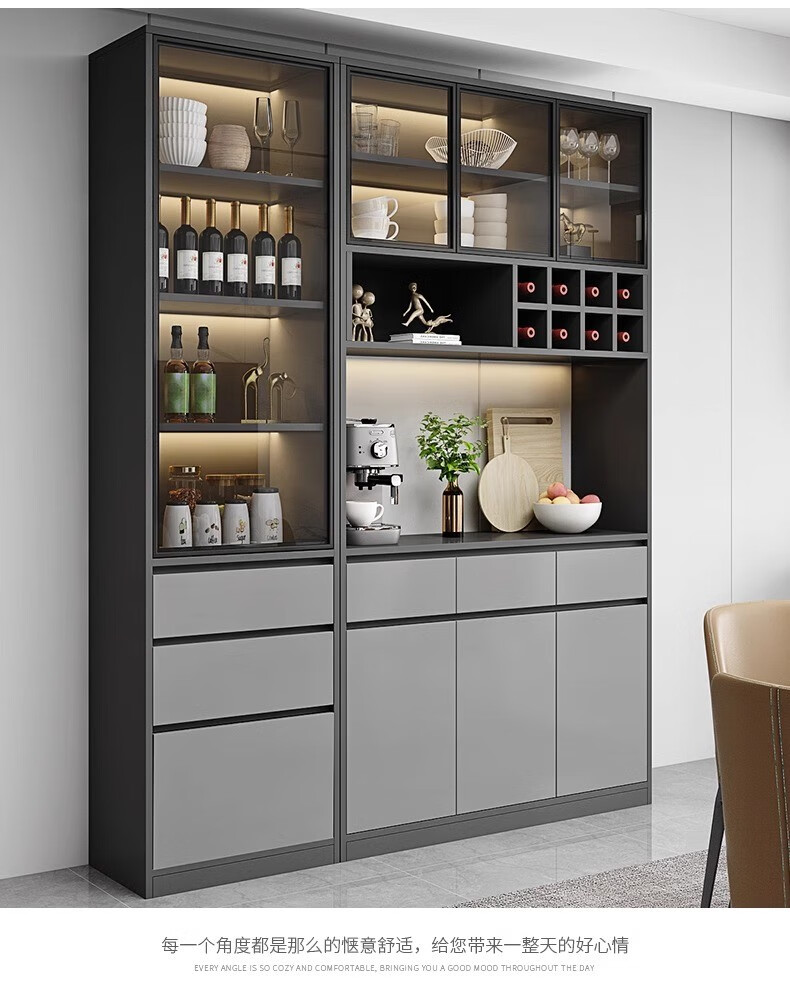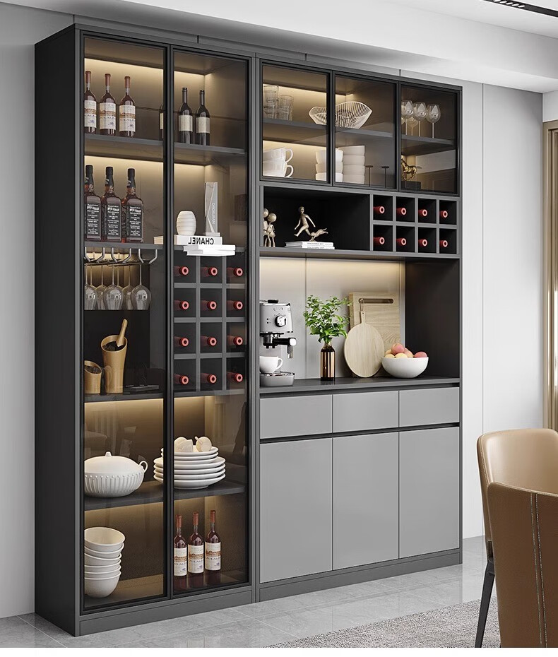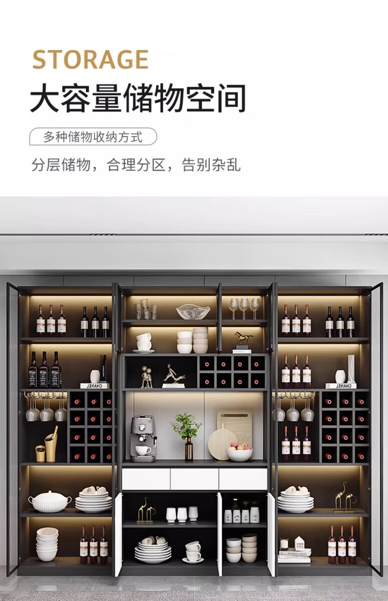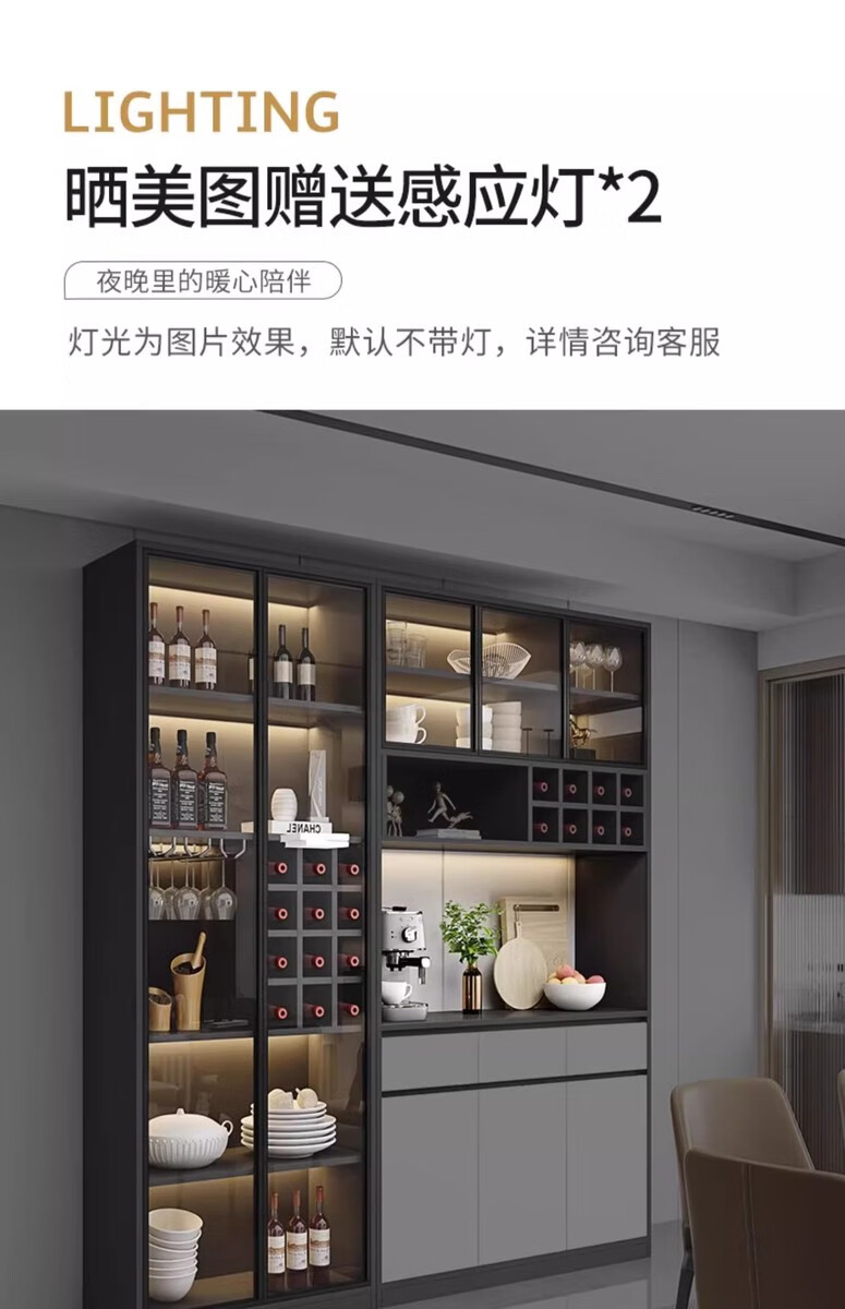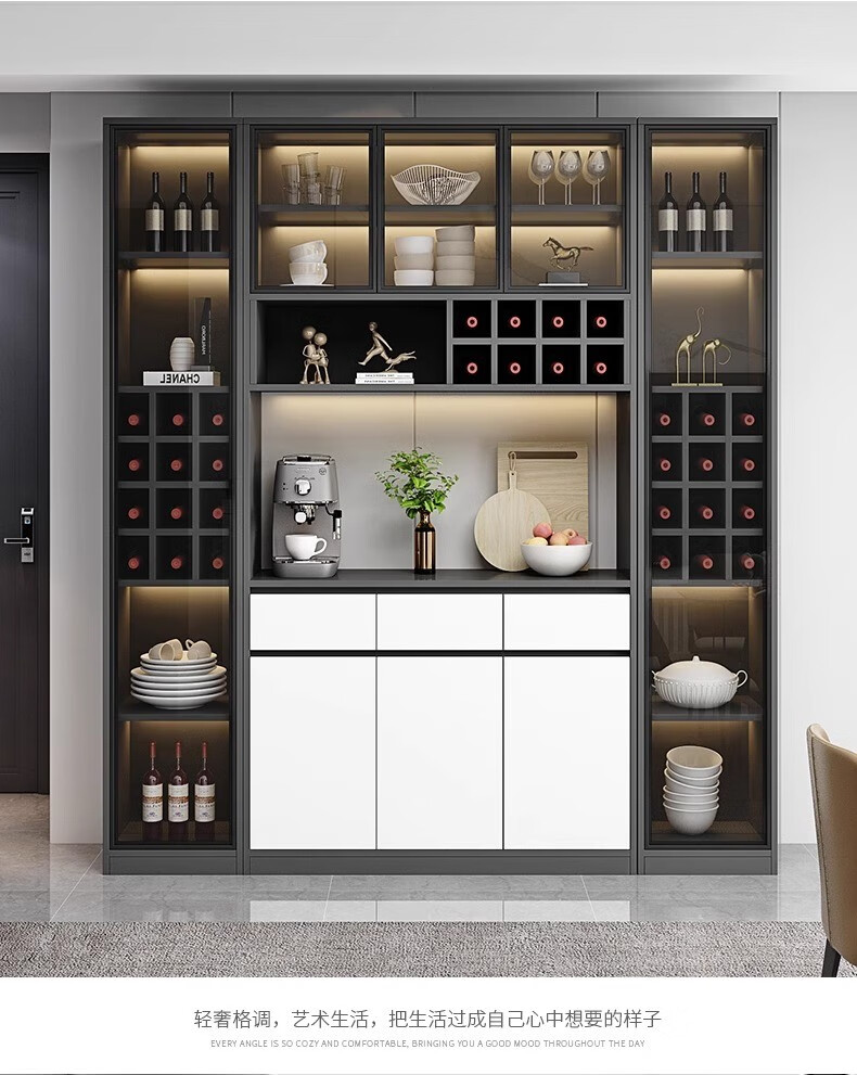 The middle shopkeeper's living room wine cabinet display cabinet against the wall 2025 solid wood light luxury tea and wine cabinet storage cabinet with glass door 80A+120A+80A/white door free delivery