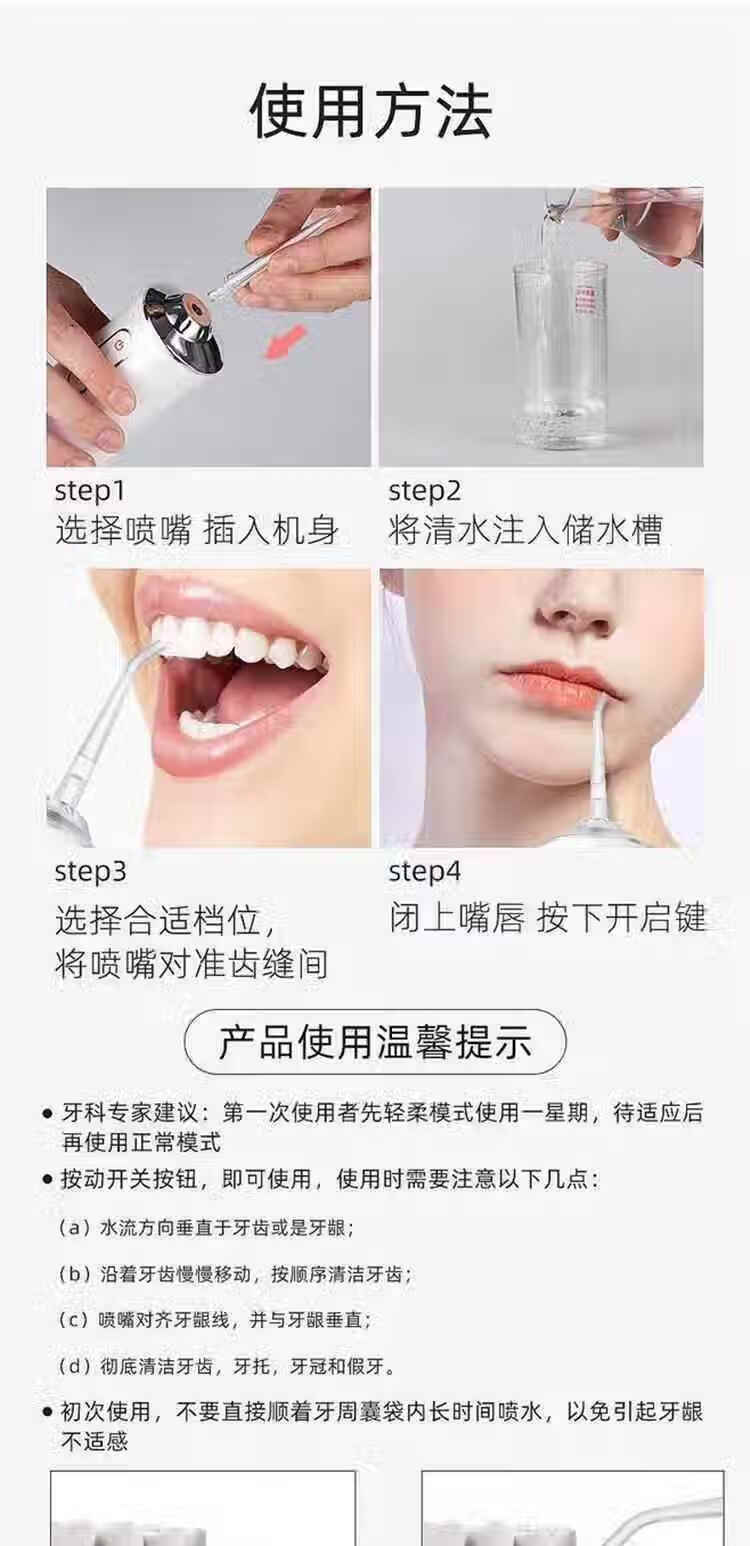 Xiaomi white German imported quality tooth cleaner medical electric tooth rinser household charging water flosser portable cleaning luxury version ivory white 4 original nozzles