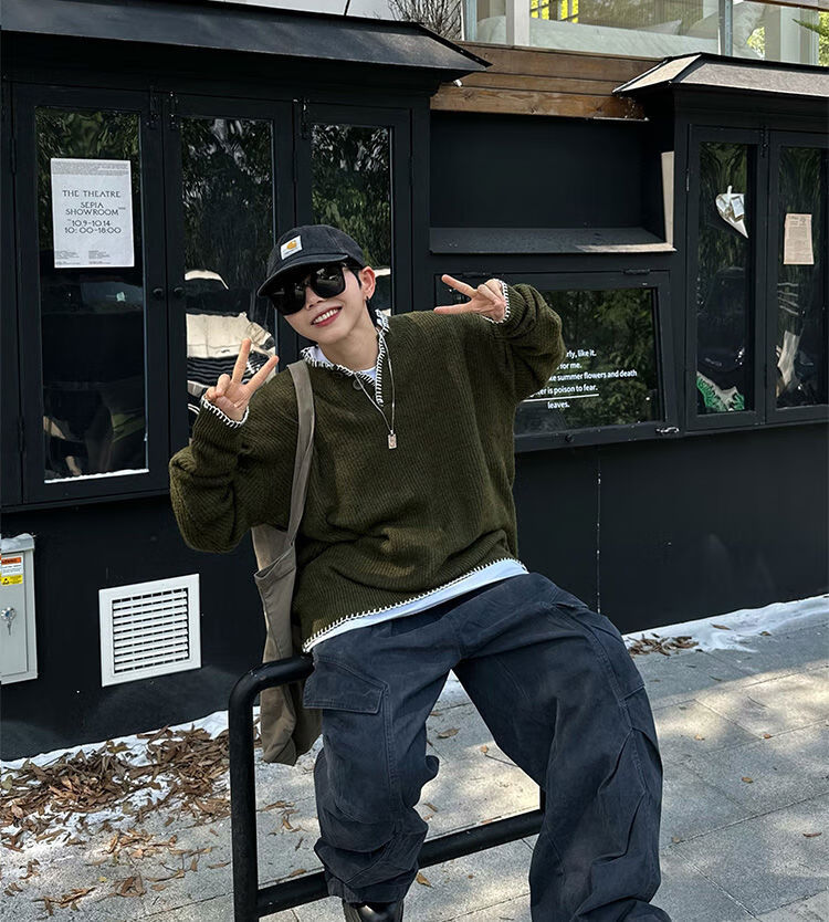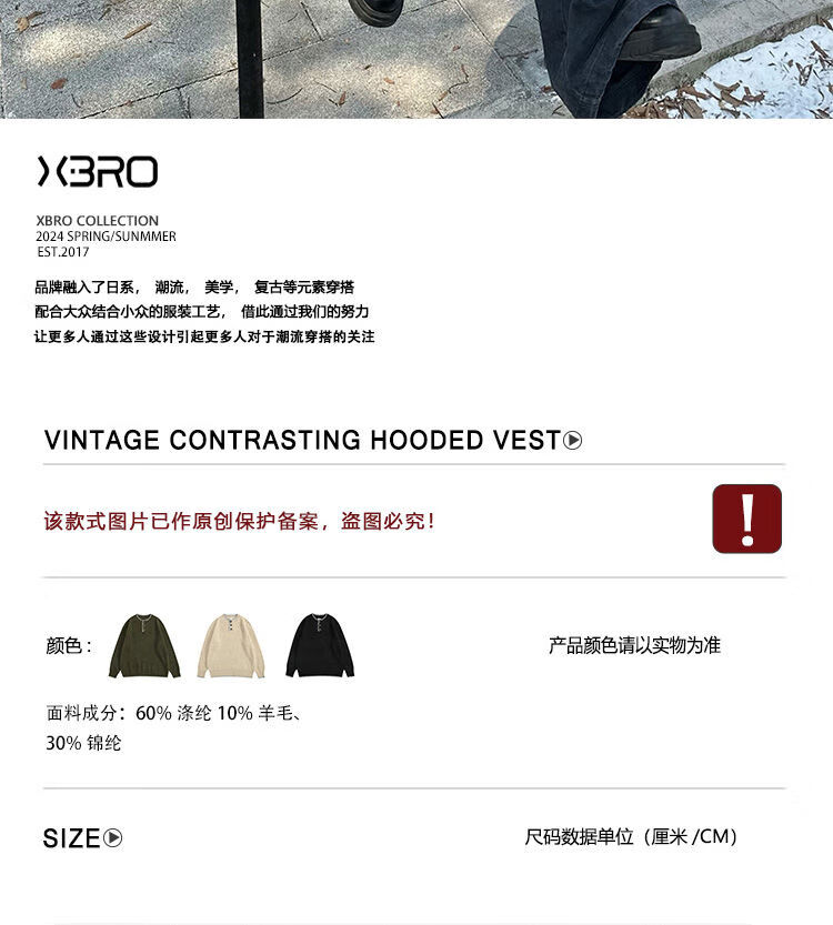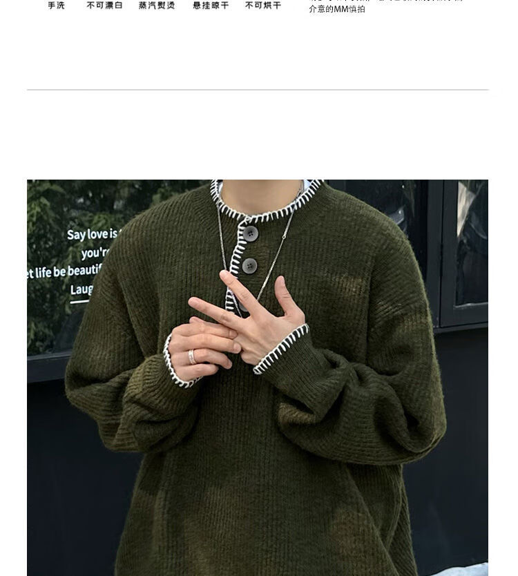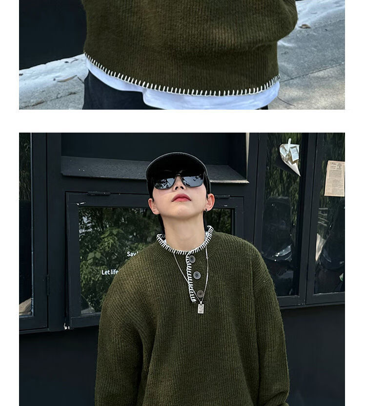 XBRO American retro vintage spring and autumn wool blended lazy Henry collar sweater pullover sweater for men and women dark green G076 wool sweater in stock M M loose and too large