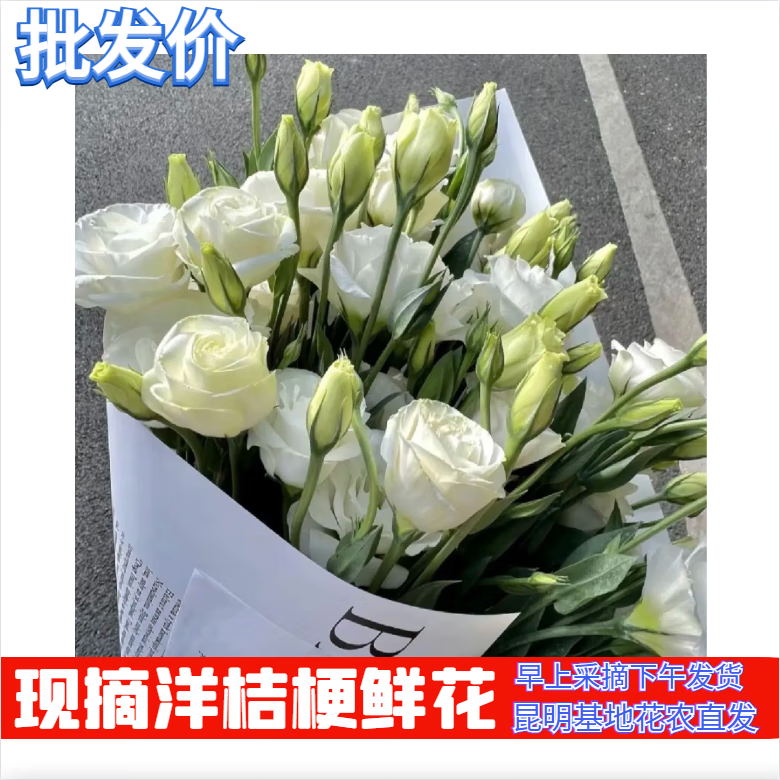 Kunming Lisianthus flower base direct hair indoor living room flower arrangement water for home bouquet gifts Yunnan direct batch random color Lisianthus + free grass 1 to 3 flowers with buds (no grass and preservative