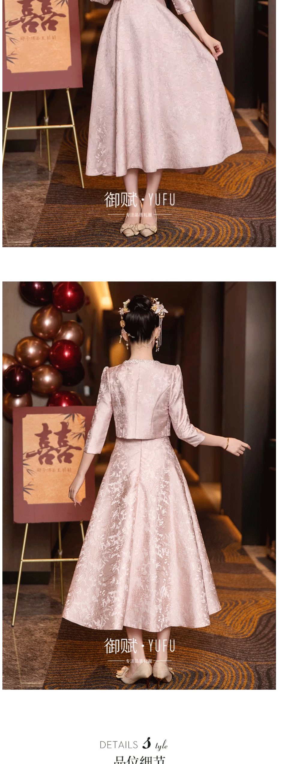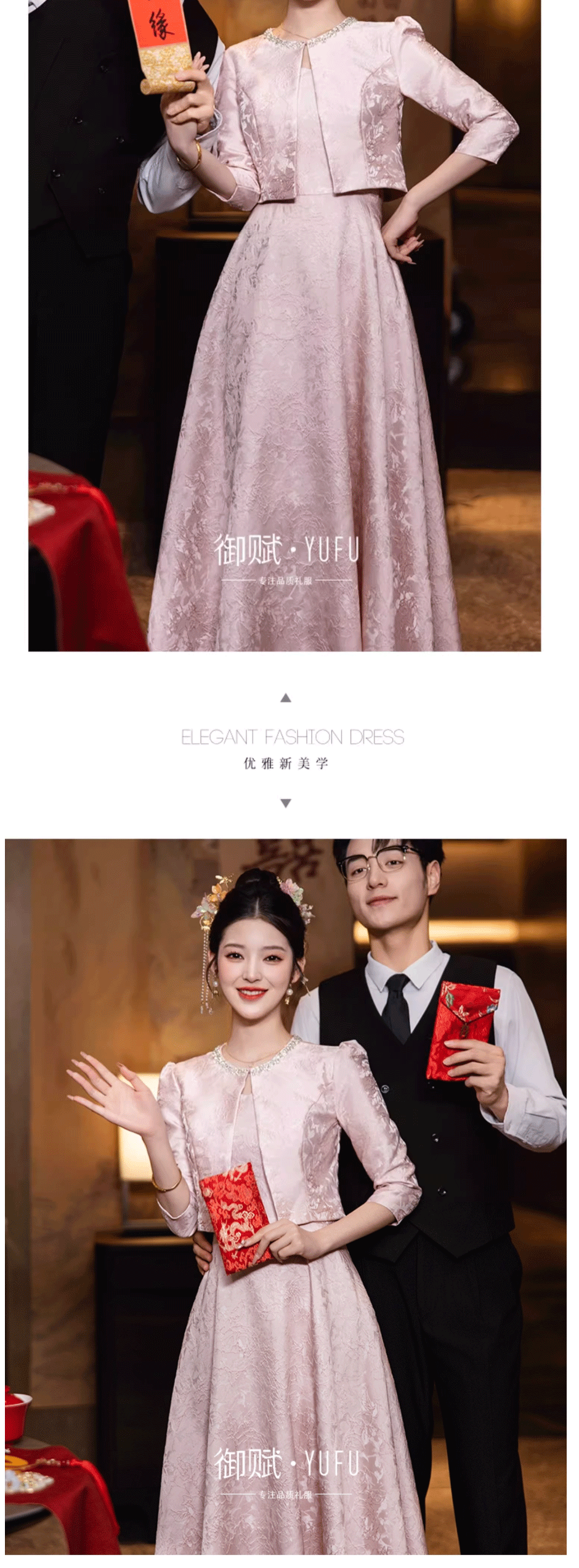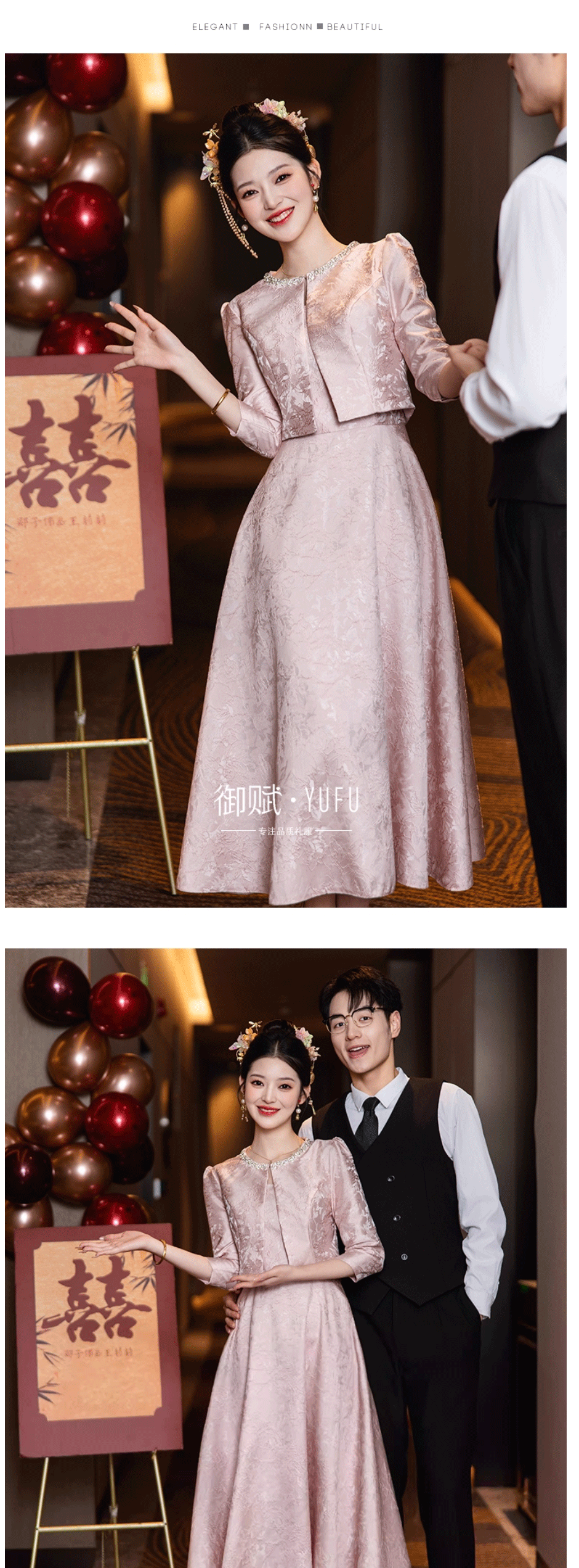 SAIDELE Toast Wear Bridal 2025 New Pink Light Luxury High-end Engagement Dress Small Wedding High-Quality Long Sleeve Picture Color XS (Recommended 75-85Jin Jin equals 0.5kg)