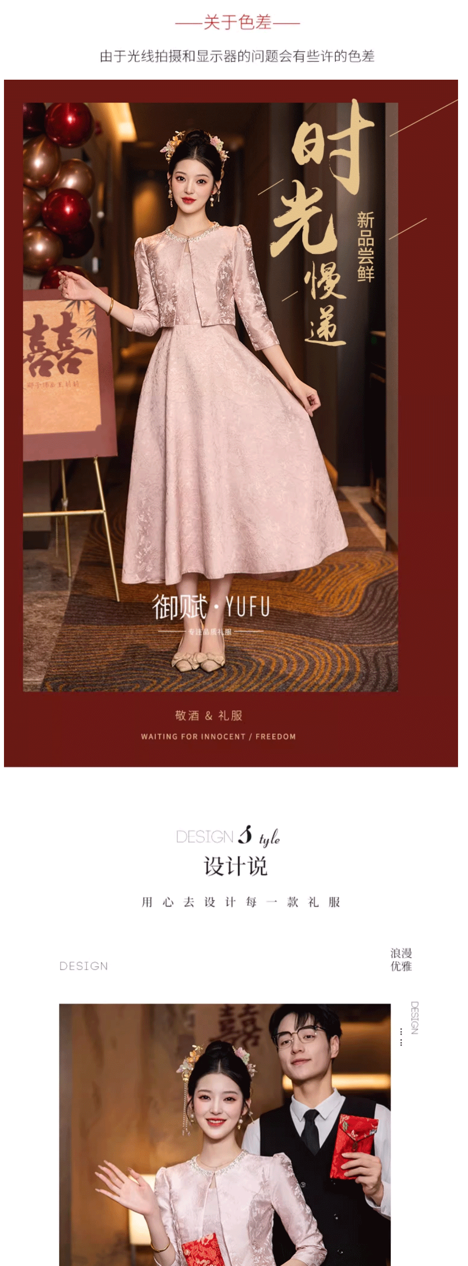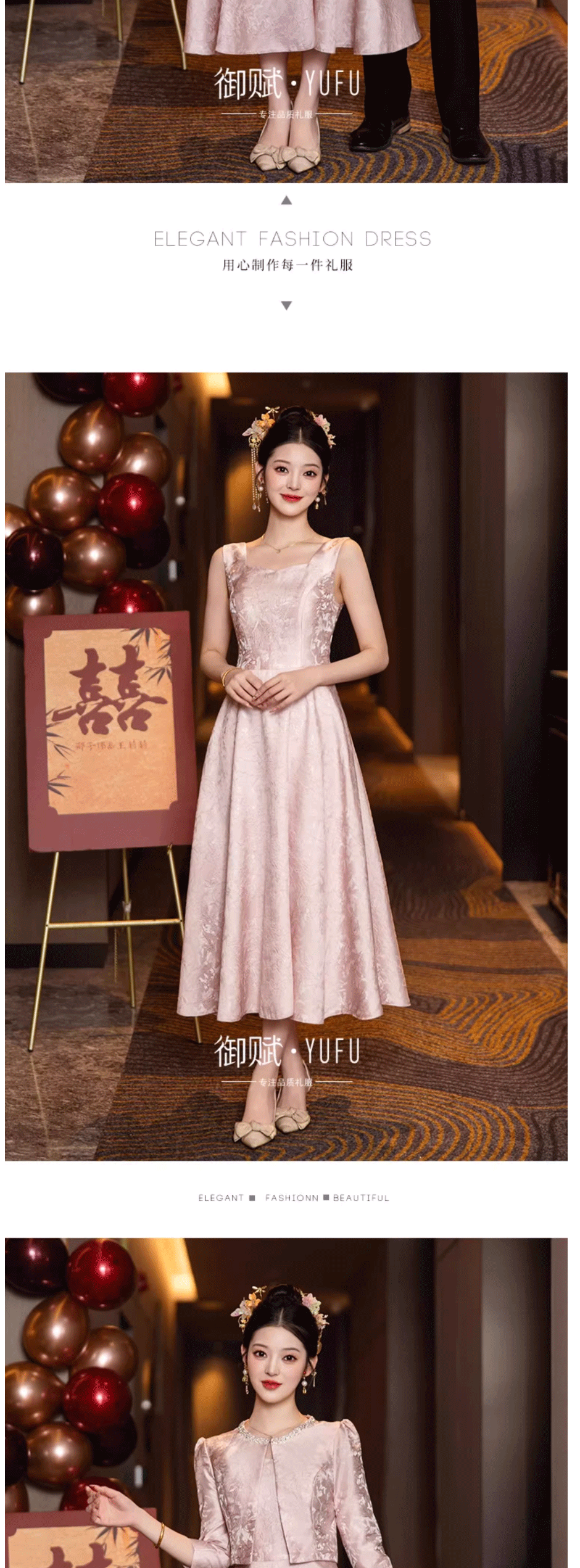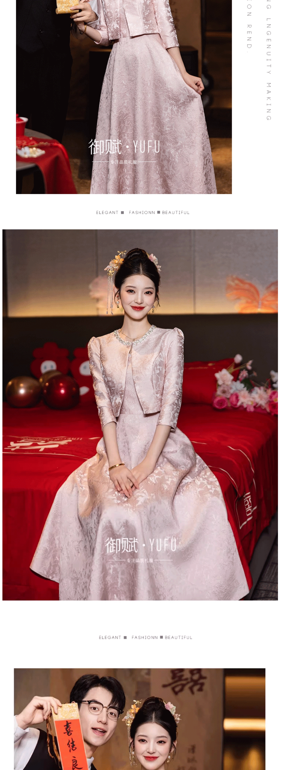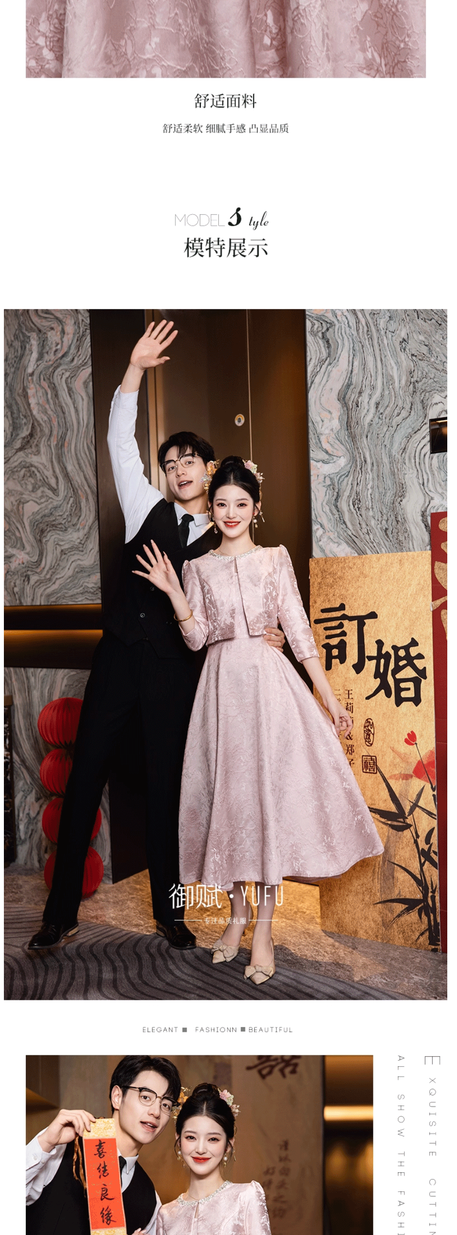 SAIDELE Toast Wear Bridal 2025 New Pink Light Luxury High-end Engagement Dress Small Wedding High-Quality Long Sleeve Picture Color XS (Recommended 75-85Jin Jin equals 0.5kg)