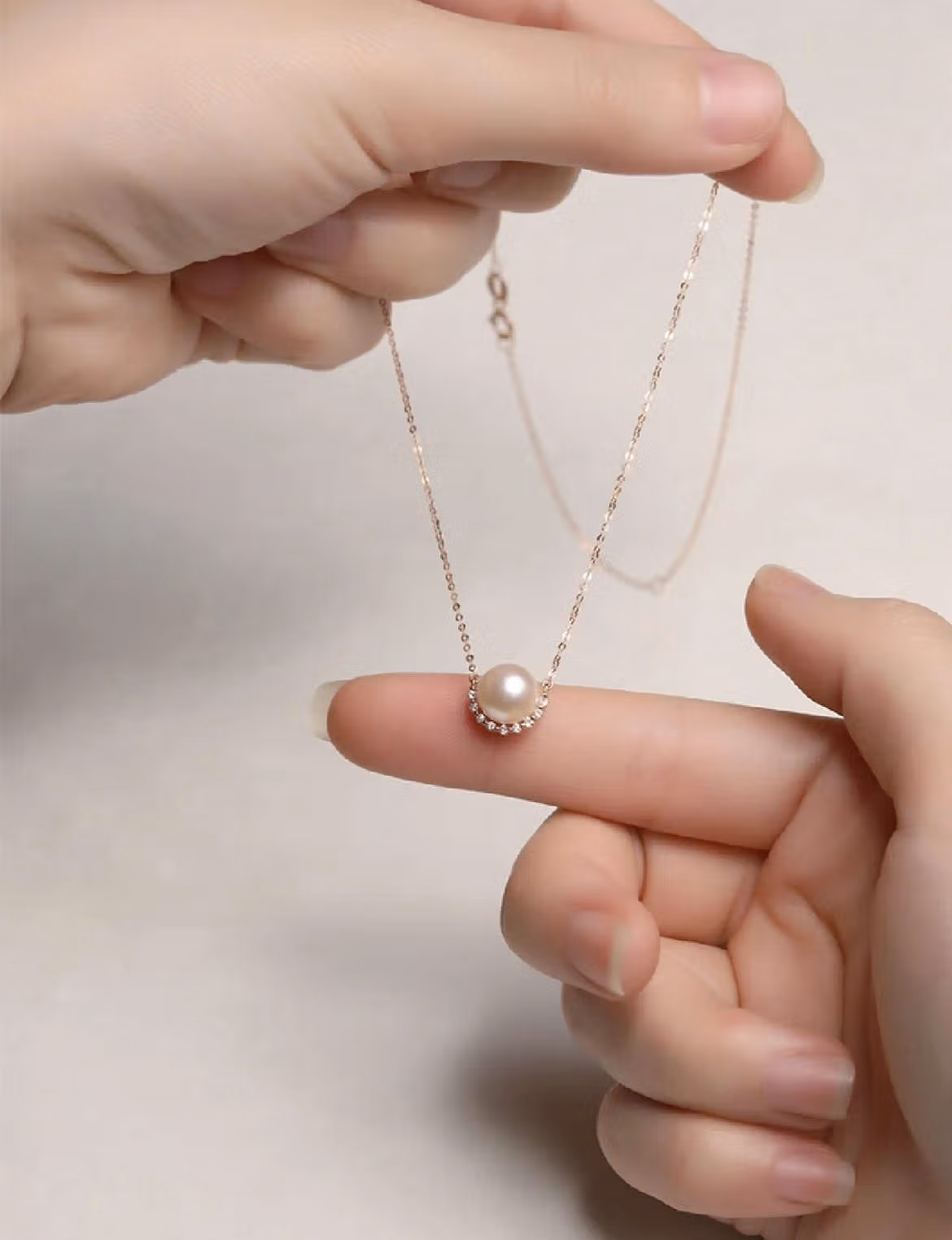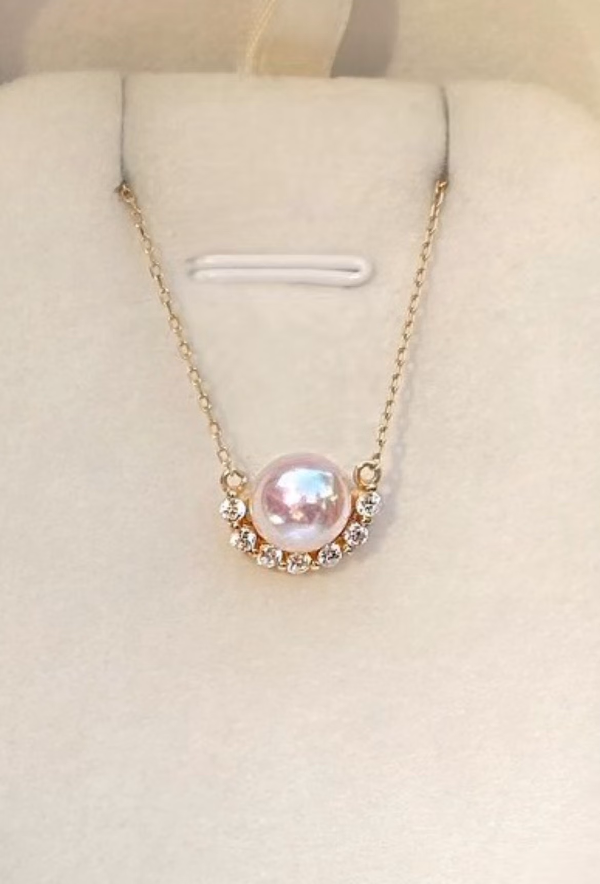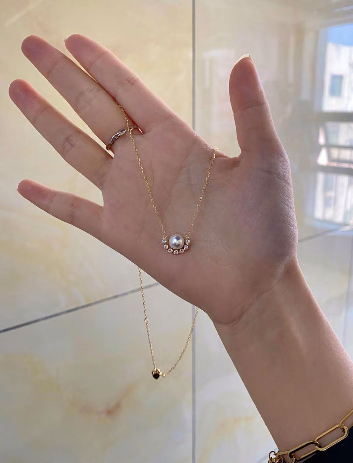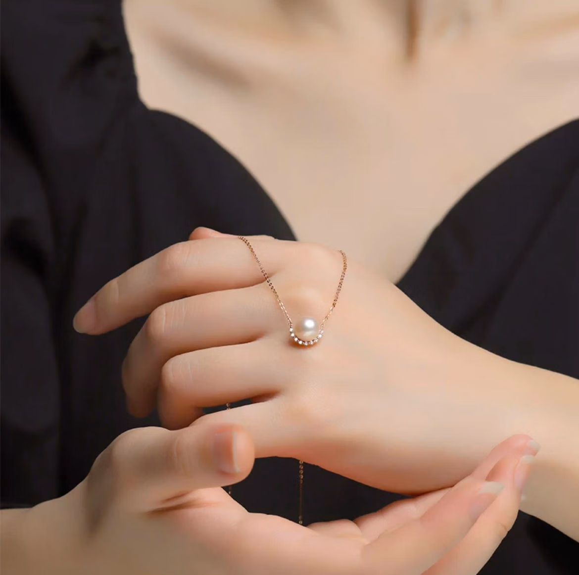 I LOVE HOLIDAYoeinOEIN natural freshwater pearl necklace women's S925 silver small sun half circle diamond single pendant clavicle chain default