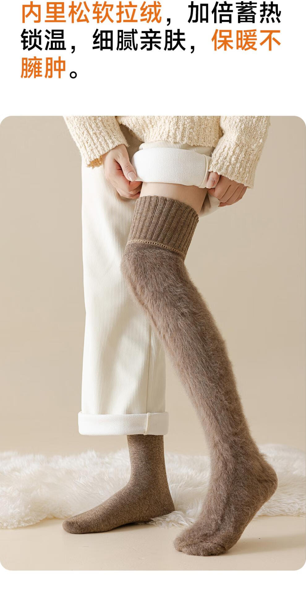 NEARKINS wool over-the-knee socks for women in autumn and winter, extra length and velvet, thickened and warm thigh socks, non-slip, non-falling, high socks, black 1, one size fits all, 35-40 soft waxy wool_extended over the knee_no long johns