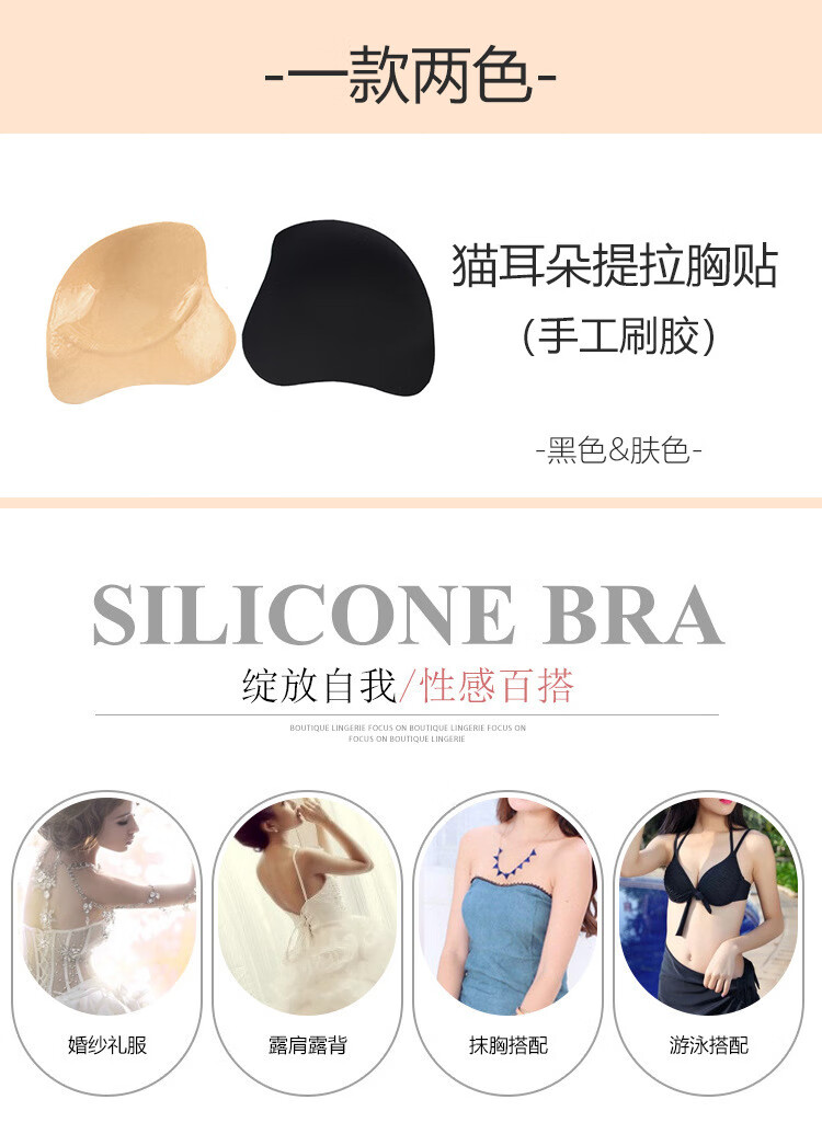 New Cat Ear One-piece Invisible Bra Wedding Dress Strapless Breathable Seamless Silicone Bra Pad Black A