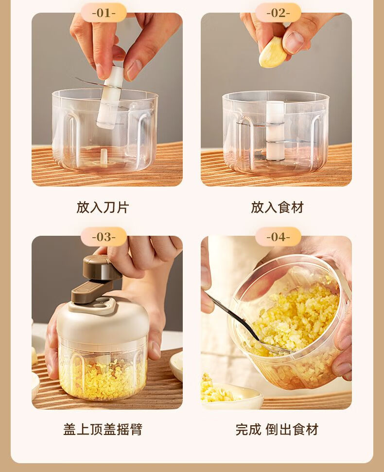 Wanzhuang's new garlic-pulling artifact, manual garlic mincer, garlic grinder, small + large, three-speed change