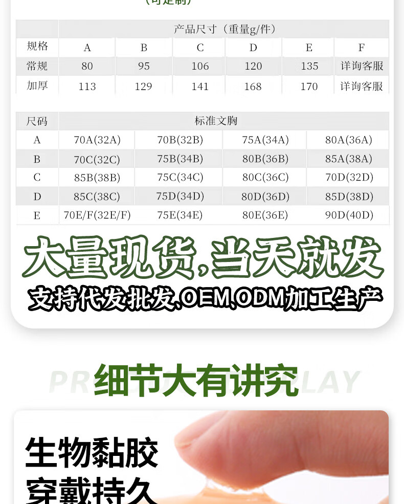 Maßgeschneiderter unsichtbarer Silikon-BH für große Brüste, dünnes schlaffes Brustpflaster, Silikon-BH-Patch, Hautfarbe, Masse A