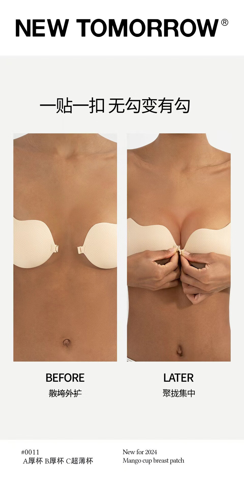 0011 Sticky Mango Breast Paste Wedding Gown Push Up Small Show Big Thin Invisible Bra Underwear Silicone Paste Nude Skin Color A Thick Cup