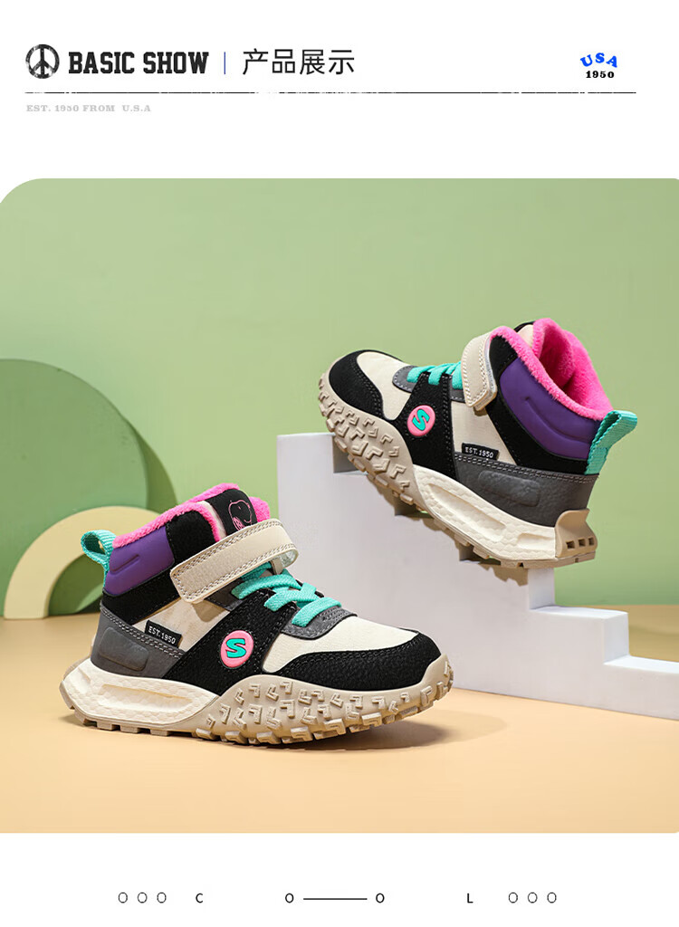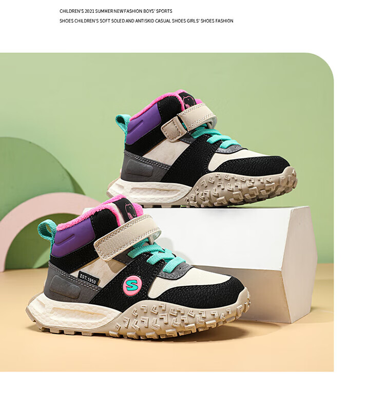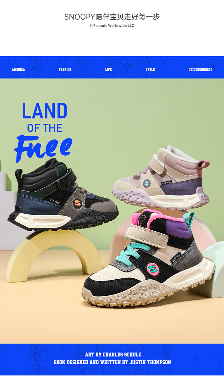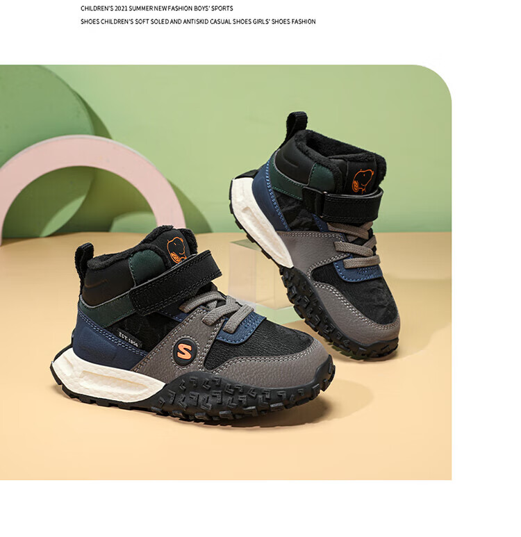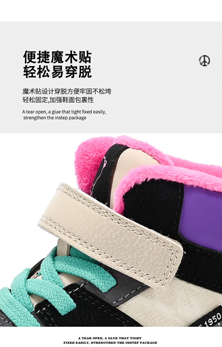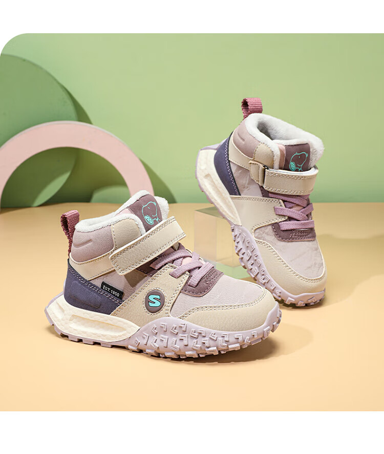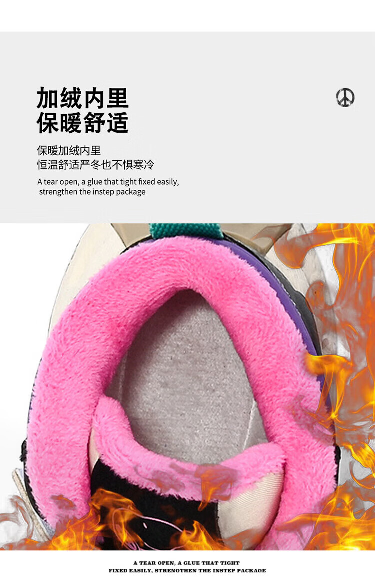 Snoopy Girls' Large Cotton Shoes Winter Snow Boots 2024 New Northeast Anti-Slip Children's Shoes Plus Velvet Sports Shoes Rose Red Plus Velvet 26