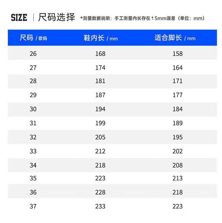 China (cm) 36 - 37 38 - 39 40 - 42 43 - 44 45 - 47