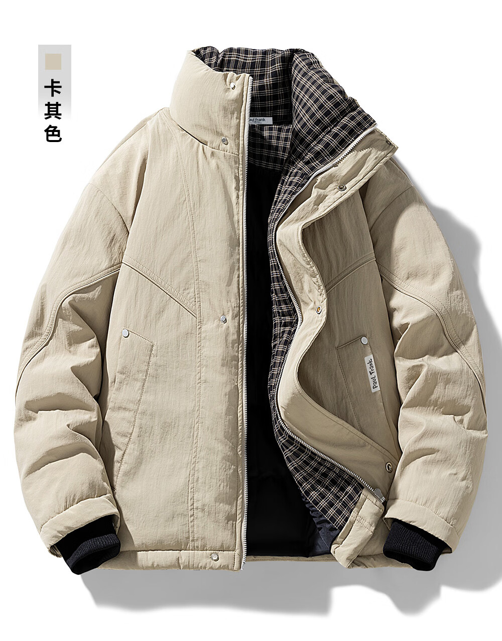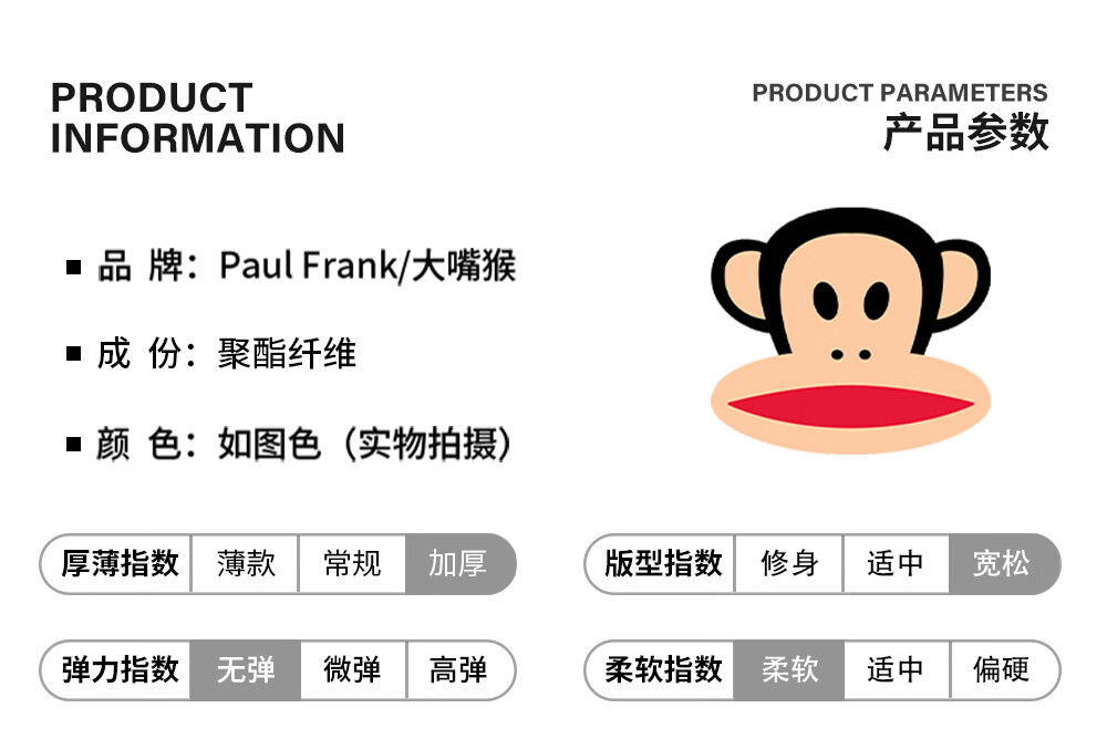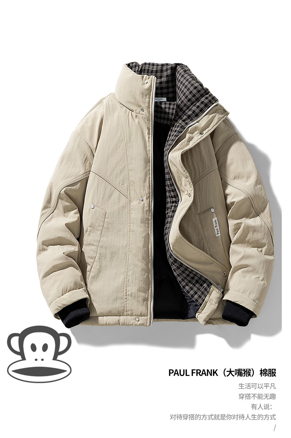 Big mouth monkey (paul frank) stand collar contrasting color cold-proof cotton coat for men in winter new fashion brand warm thickened cotton coat casual versatile cotton jacket black official authentic L recommended 125-145Jin Jin equals 0.5 kg