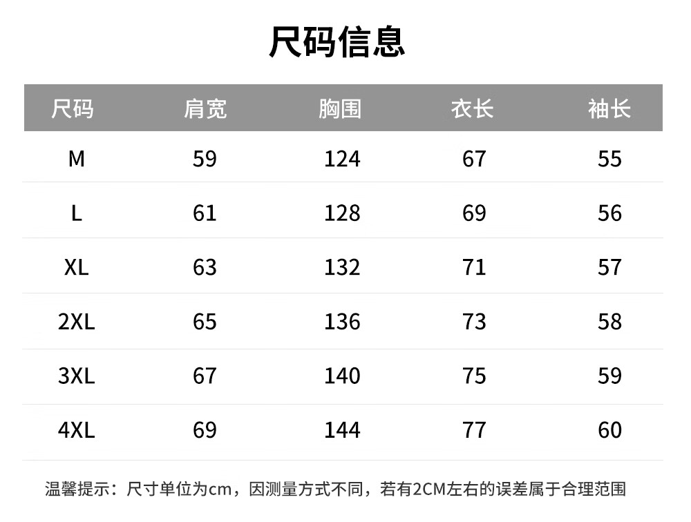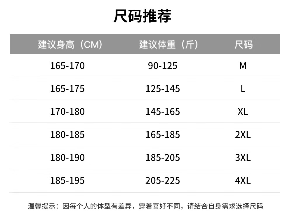 China (cm) 165 / 88-90 170 / 96-98 175 / 108-110 180 / 118-122 185 / 126-130