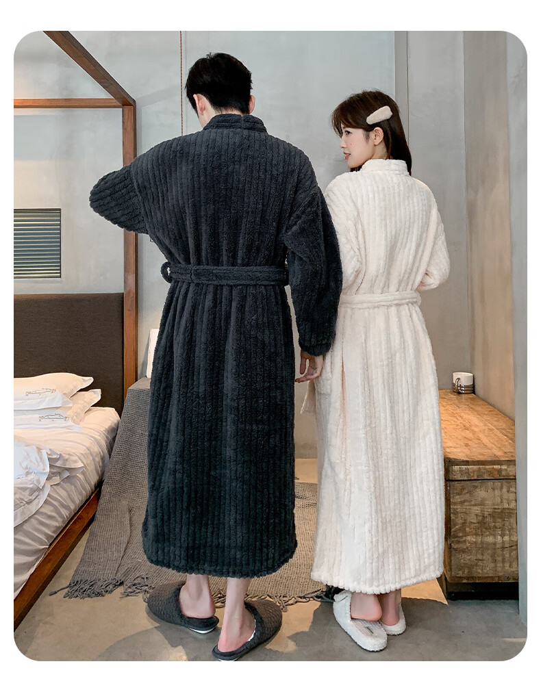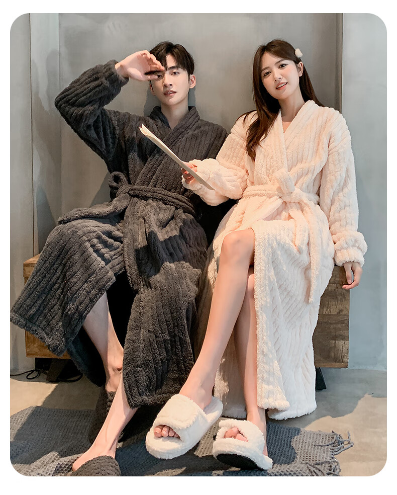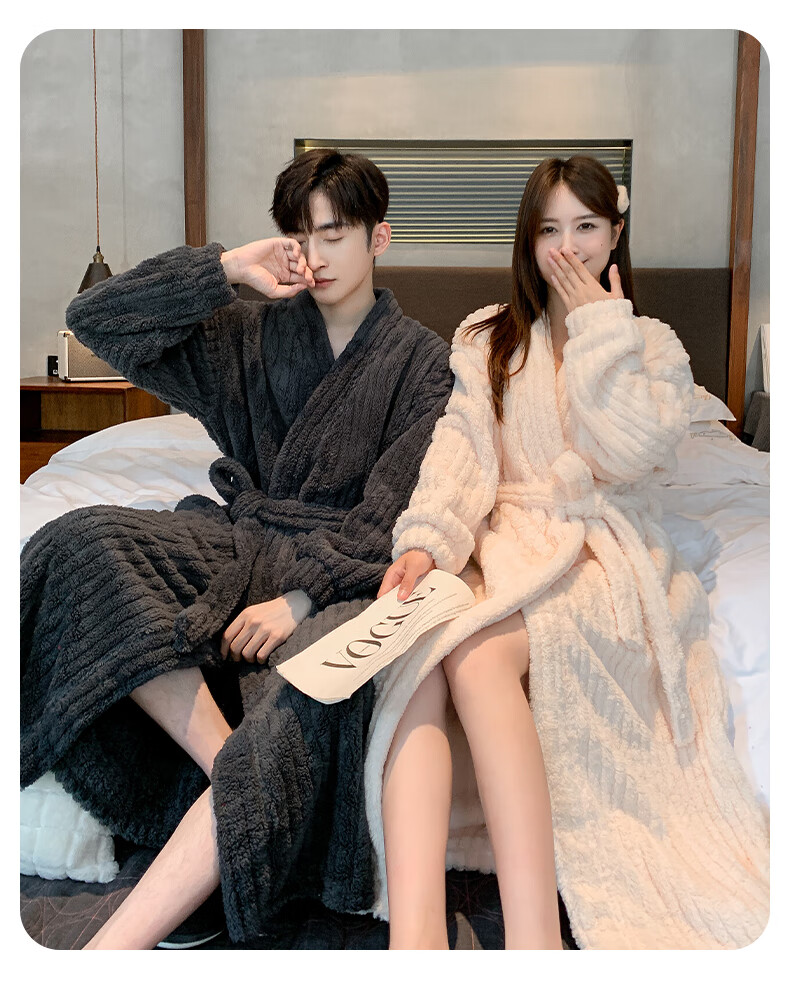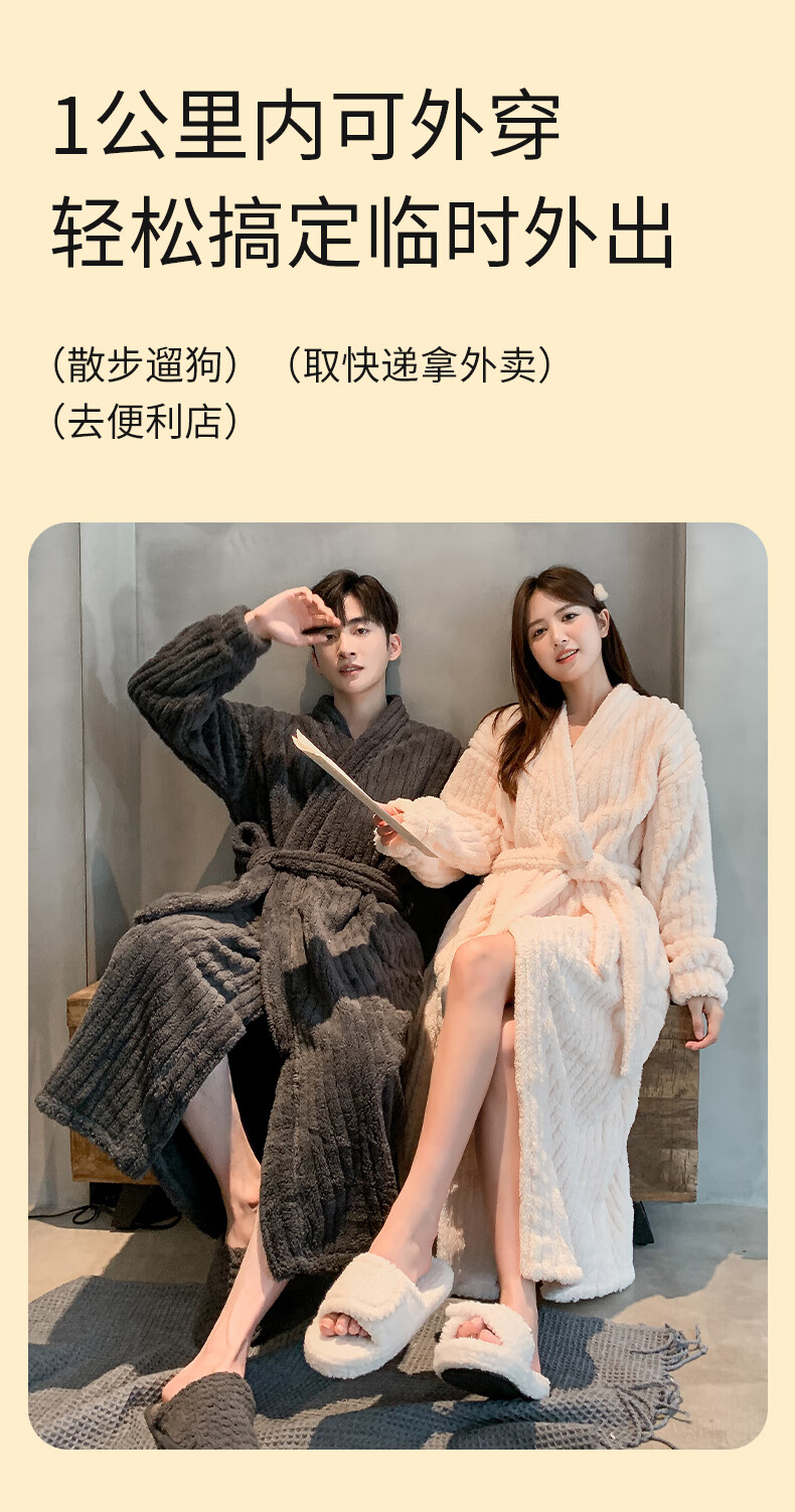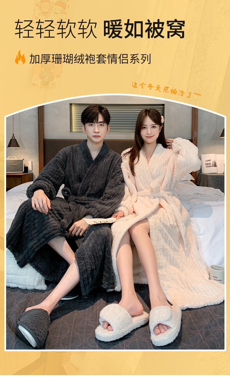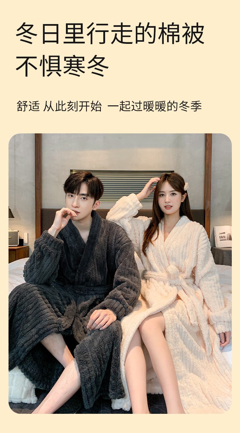 LangSha (LangSha) Nightgown Women's 2025 New Couple's Nightgown Thick Extra Long Flannel Bathrobe Coral Velvet Nightgown Men's Bathrobe Home Clothing Women's M
