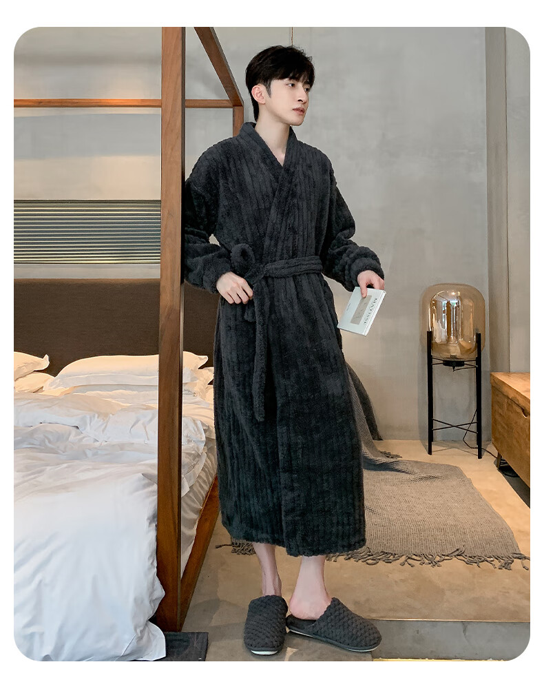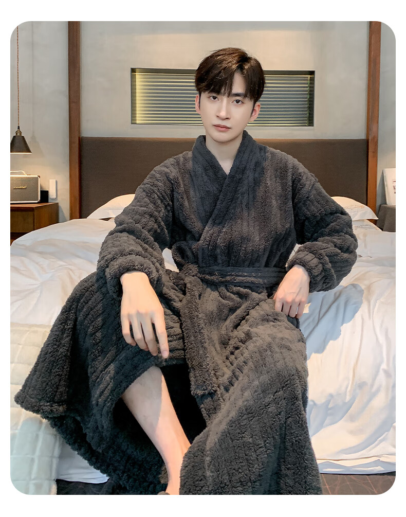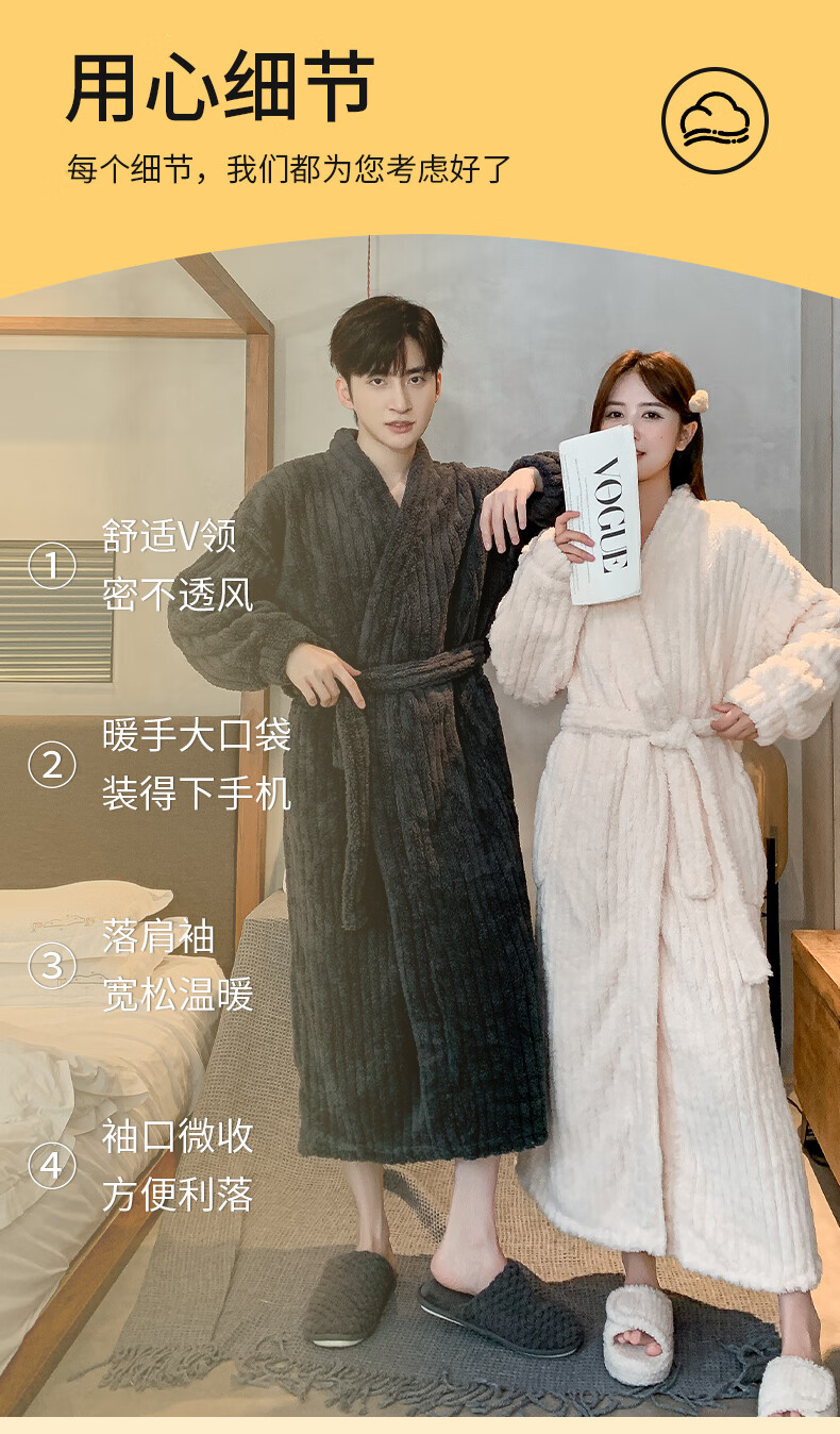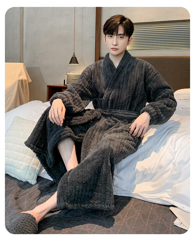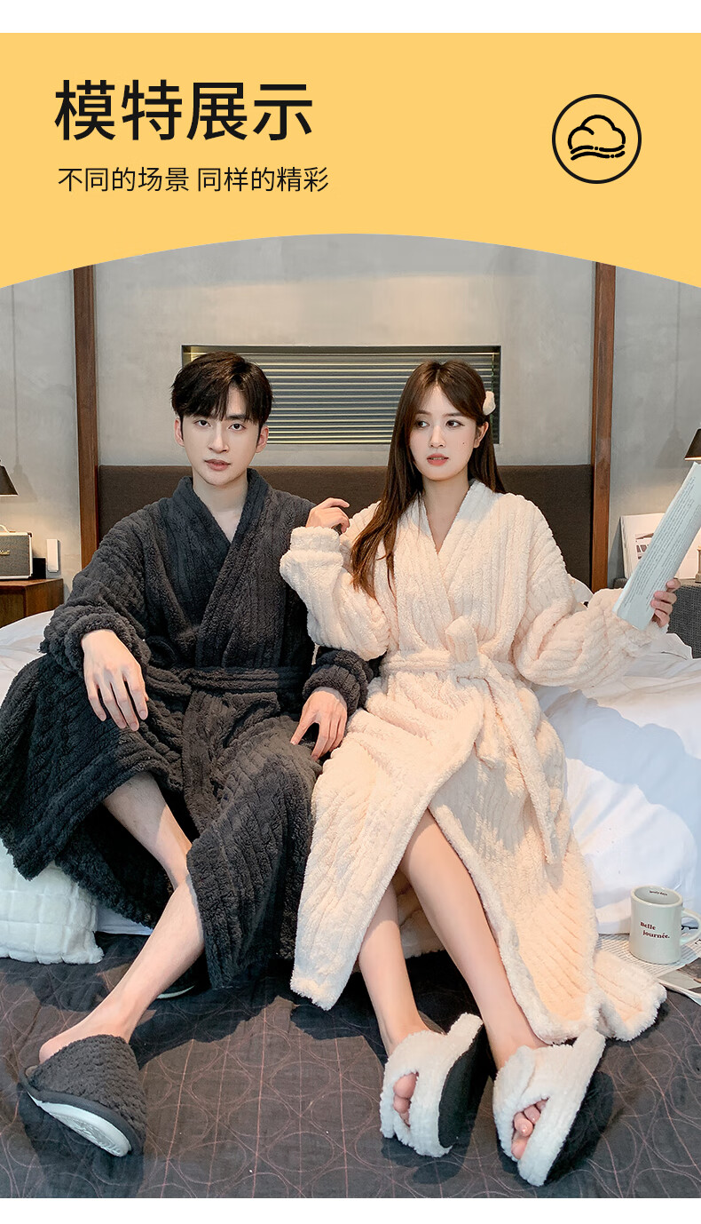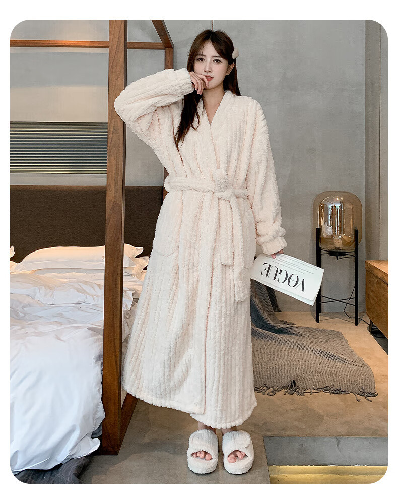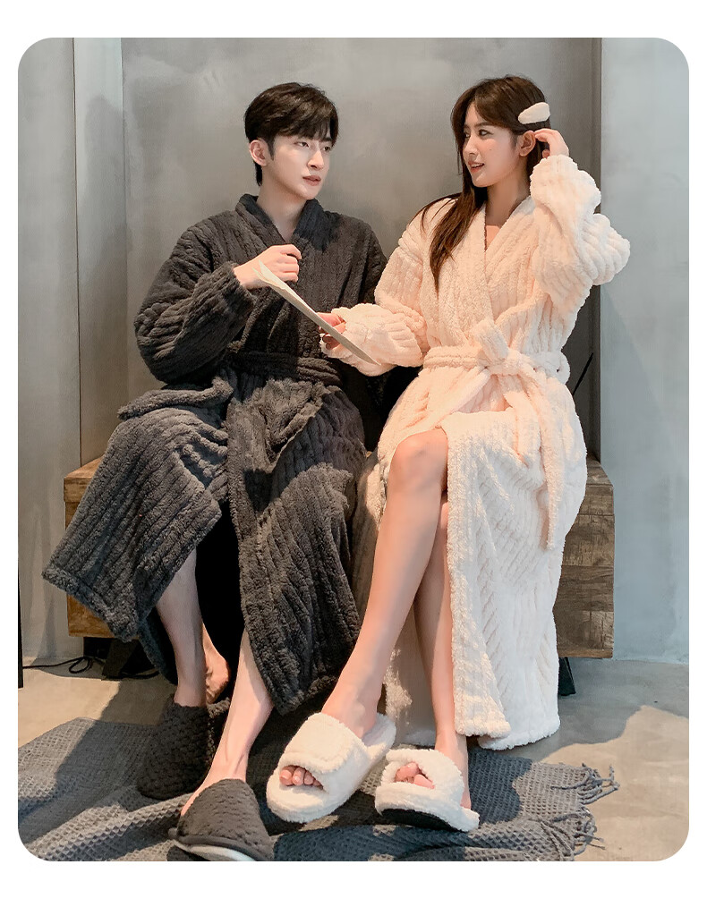 LangSha (LangSha) Nightgown Women's 2025 New Couple's Nightgown Thick Extra Long Flannel Bathrobe Coral Velvet Nightgown Men's Bathrobe Home Clothing Women's M