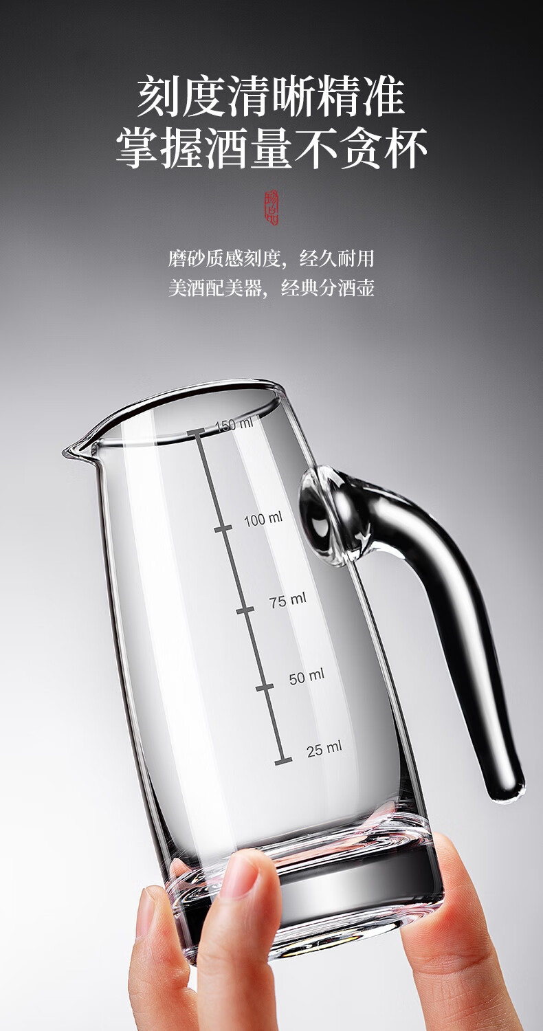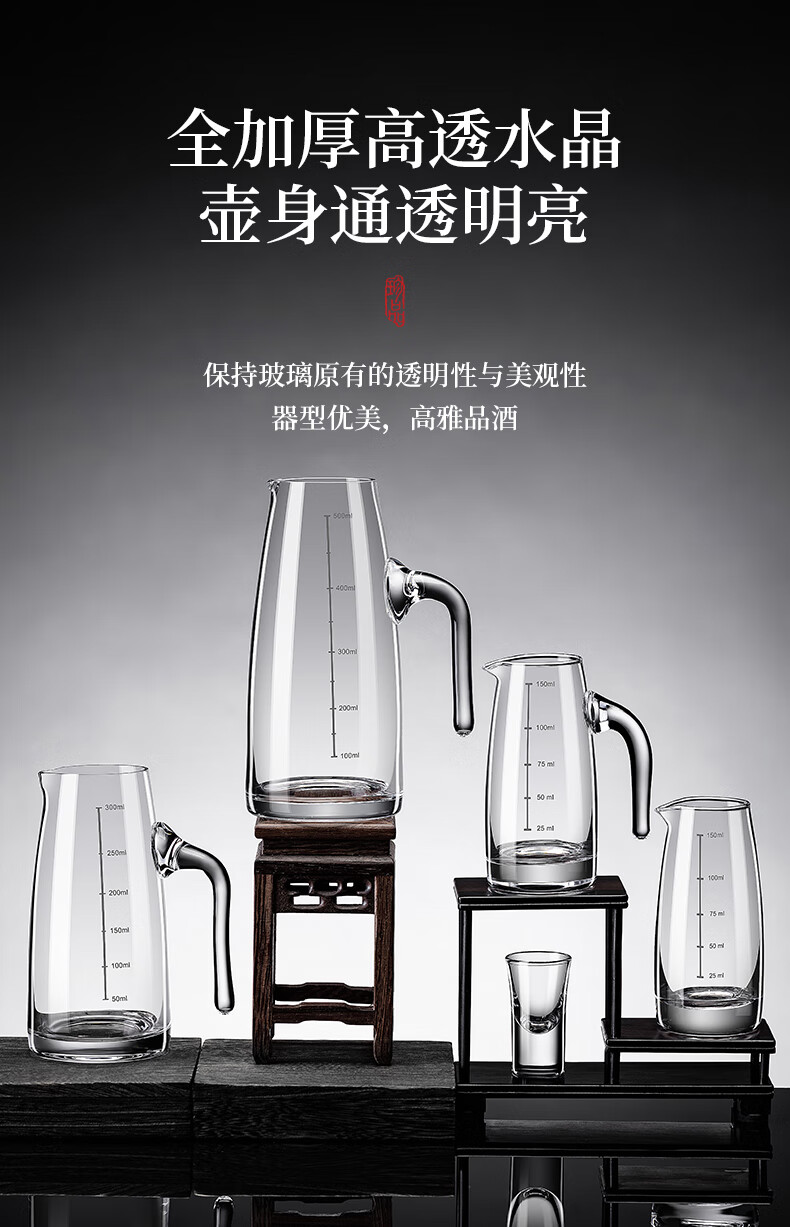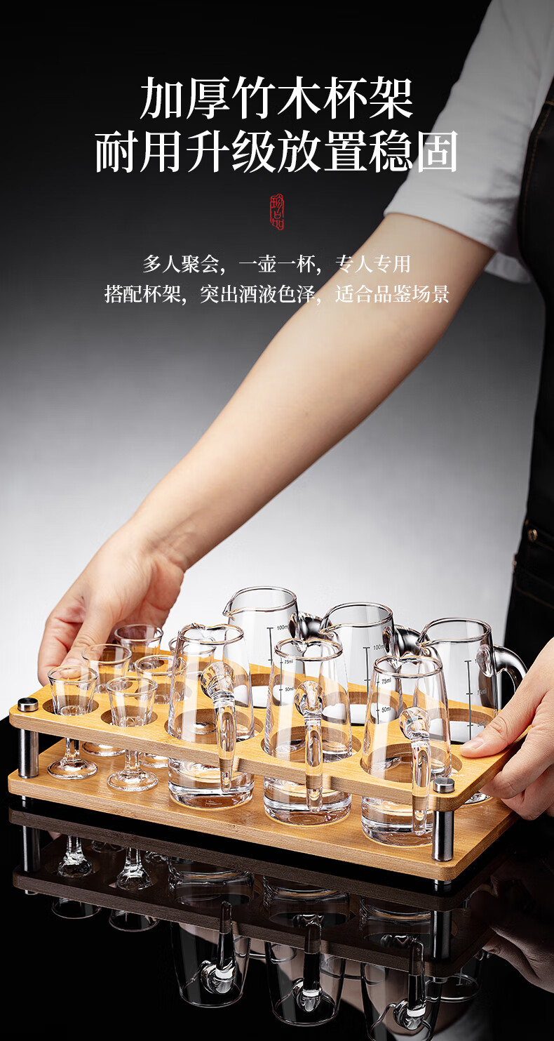 DKO liquor dispenser set hotel commercial wine dispenser 100ml scale kettle household decanter wine glass wine set extra thick with handle 100ml*6+15ml bullet cup*6