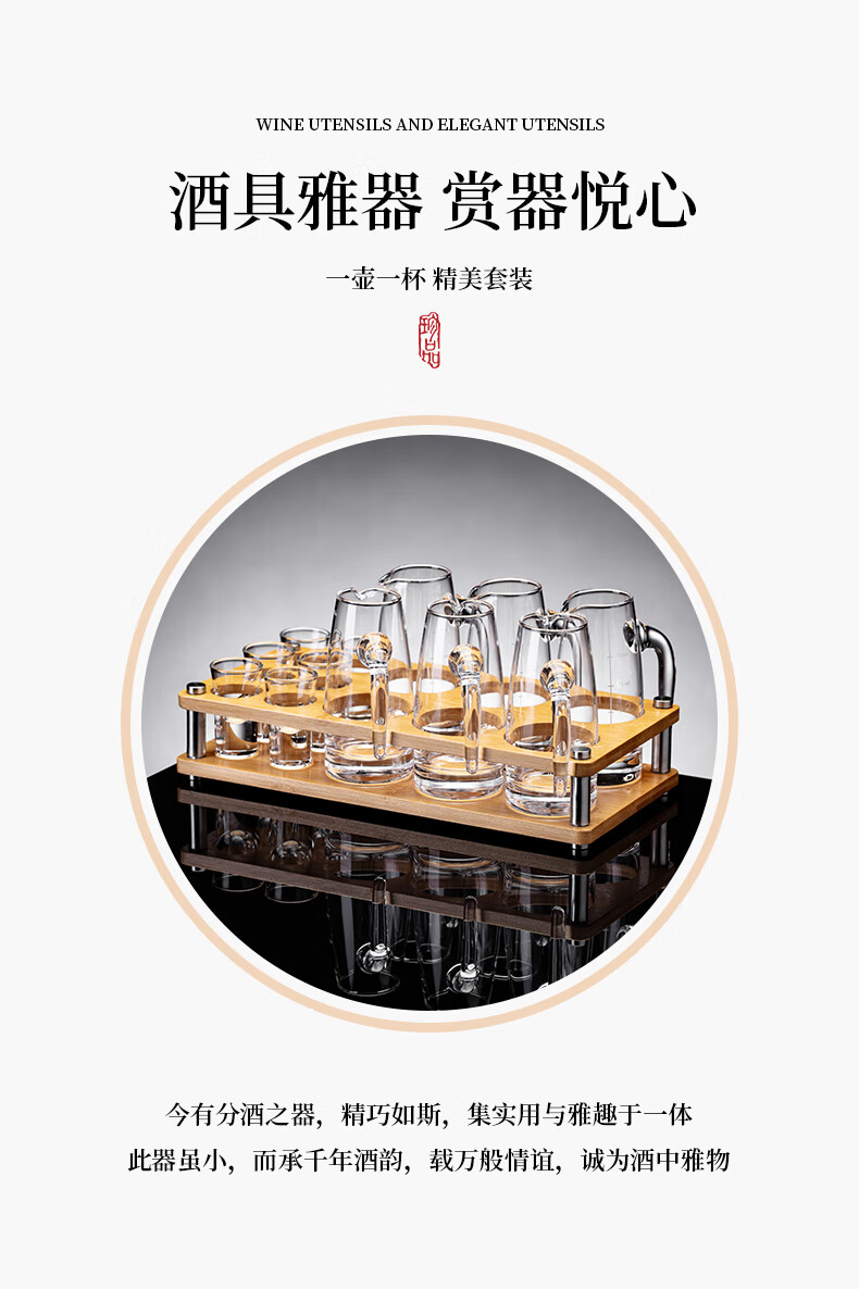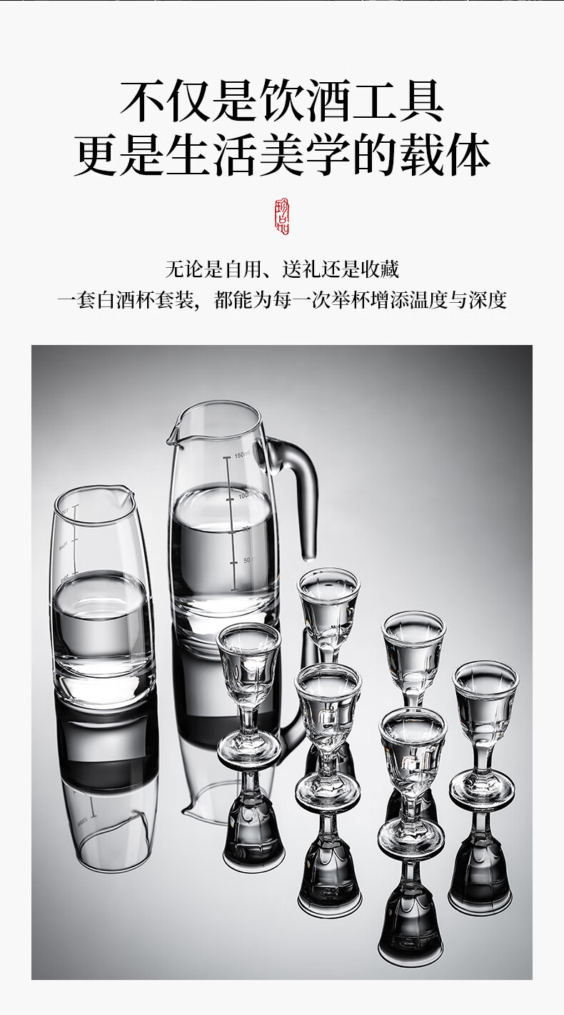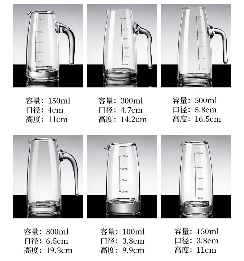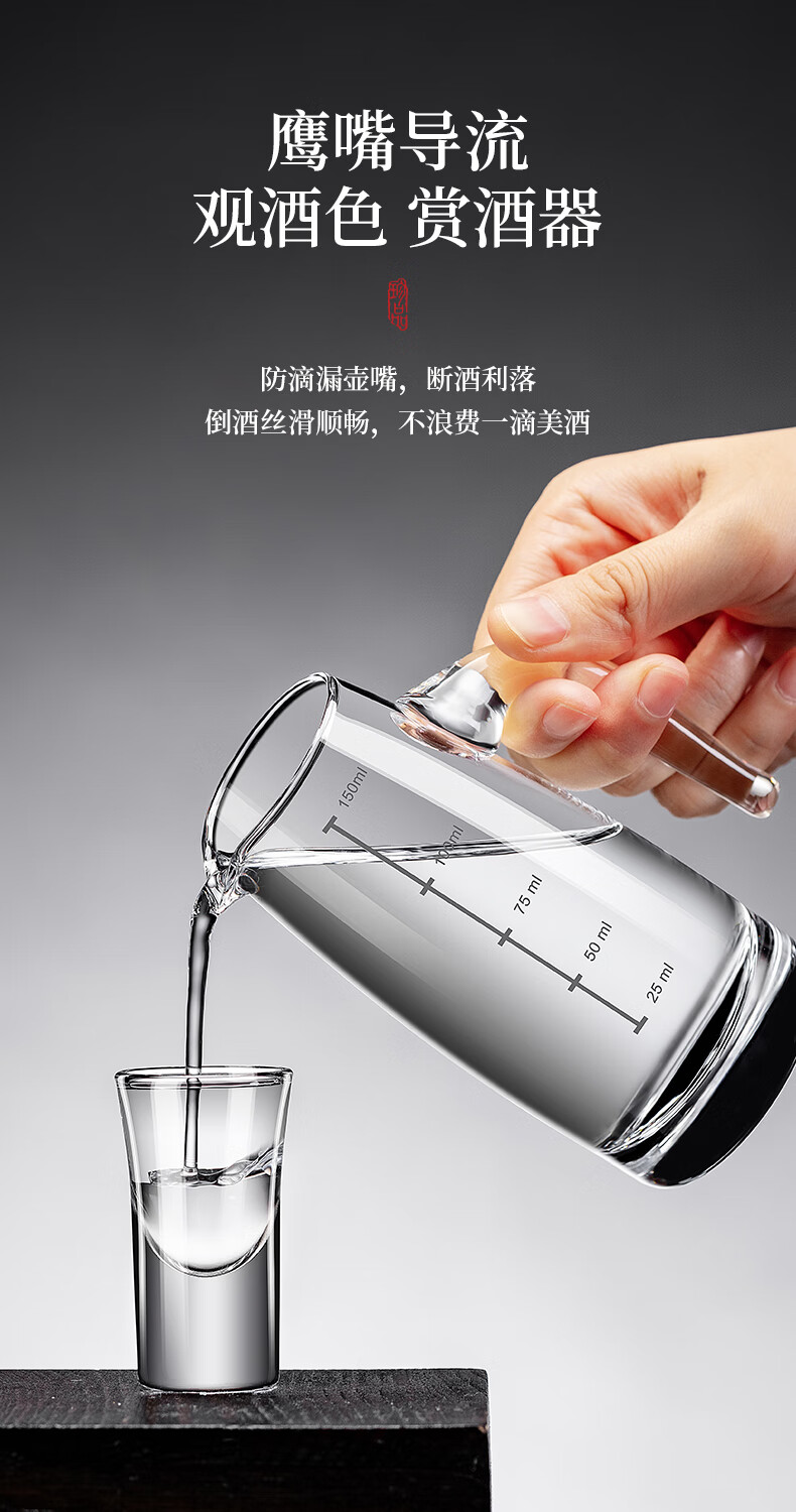 DKO liquor dispenser set hotel commercial wine dispenser 100ml scale kettle household decanter wine glass wine set extra thick with handle 100ml*6+15ml bullet cup*6