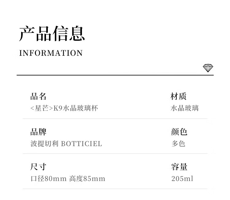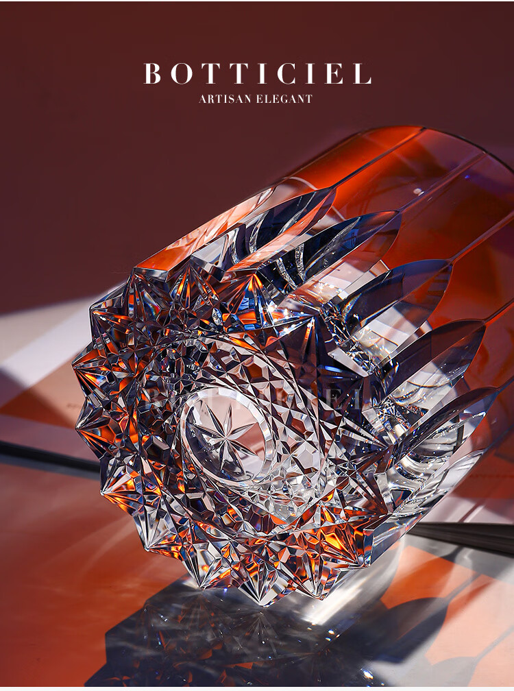 BOTTICIEL Starburst Whiskey Cup K9 Crystal Glass Handmade High-End Wine Cup Birthday, Valentine's Day, New Year's Gift K9 Crystal Starburst Cup - Transparent Color Single Gift Box 205ml 1