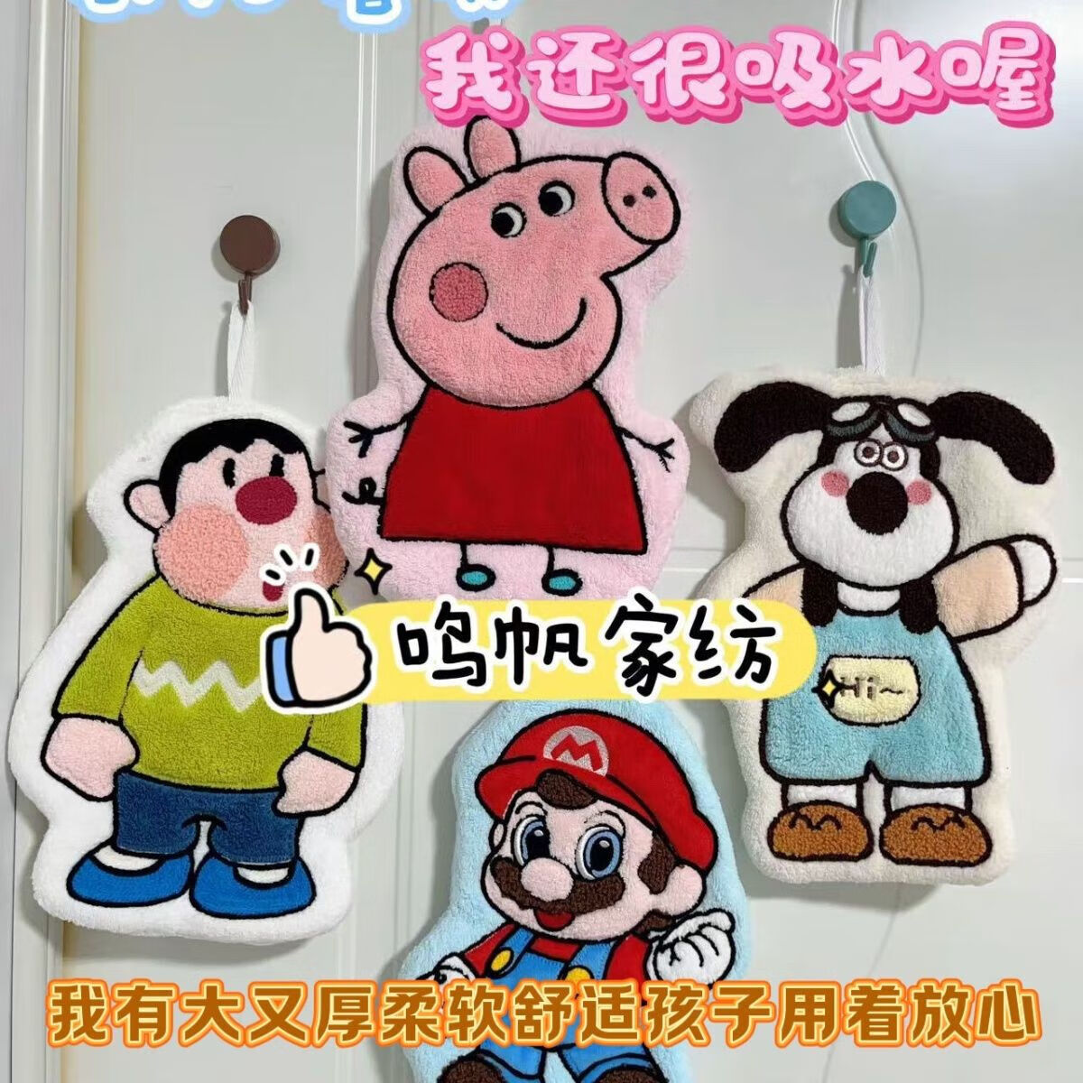 Pick-up cat cross-border piglet Peppa Pig cute cartoon water-absorbent quick-drying hand cloth thickened bathroom hand towel hanging type children's overalls dog