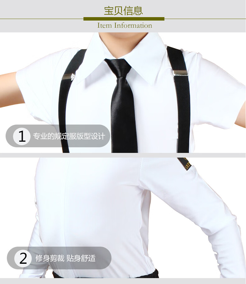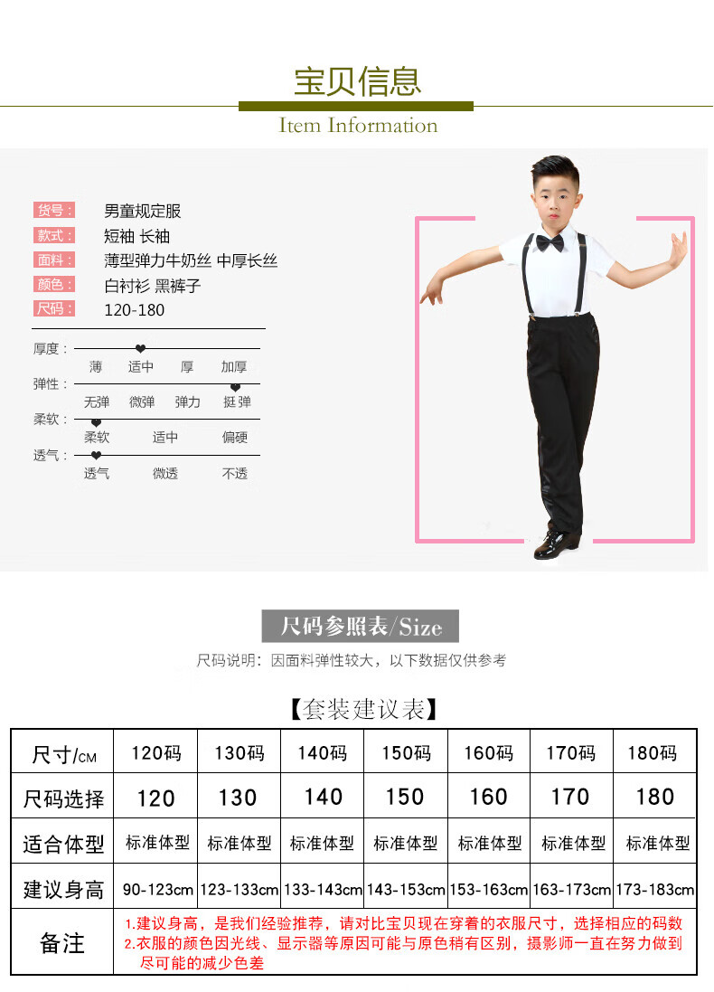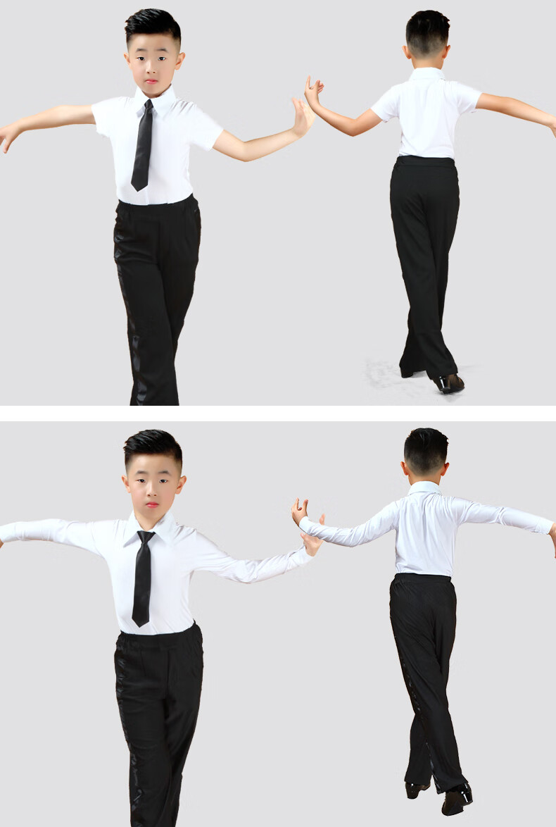 Dance clothing for boys and girls Latin dance clothing for boys and girls performance competition regulations dance clothing long sleeves white CS1 clothing + K7 pants + bow tie + suspender clip M M120 size suitable for height 90-123c