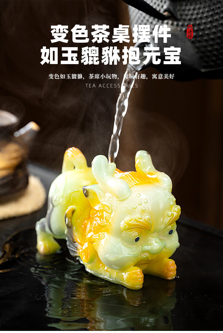 Banbaoti color-changing tea pet Pixiu holding ingot can raise tea table tea table decorations high-end tea pet tea playing kung fu tea set decoration color-changing Pixiu-without ingot