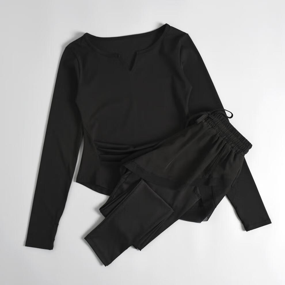 LI NING Li Ning Flagship Store 2025 autumn and winter new yoga clothing set for women, high-end Pilates training fitness long pink top + purple pants L